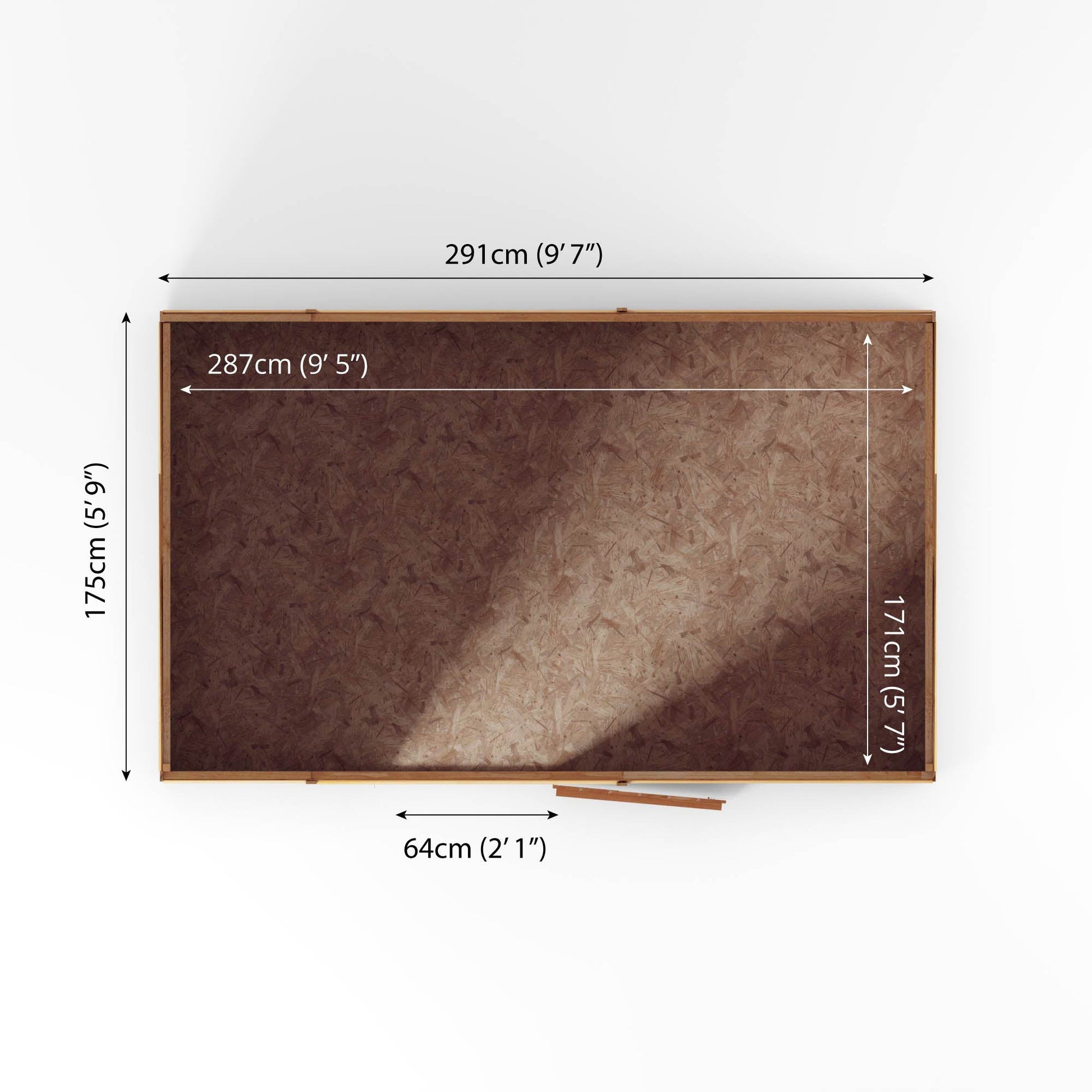 The 10x6 Overlap Pent Wooden Shed offers a spacious, modern storage solution ideal for garden tools, bikes, and outdoor furniture. Its pent roof design promotes rainwater runoff, while mineral felt provides extra weather protection. Made in the UK from sustainably sourced timber with 7mm overlap cladding and a solid 28x28mm frame. Features a wide braced door, fixed shatterproof styrene window, and solid sheet roof and floor. Backed by a 10-year anti-rot guarantee and 12-month warranty.