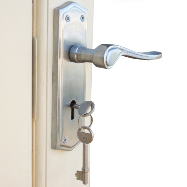 - Secure Entry: 3-lever lock with brushed chrome handles for peace of mind.