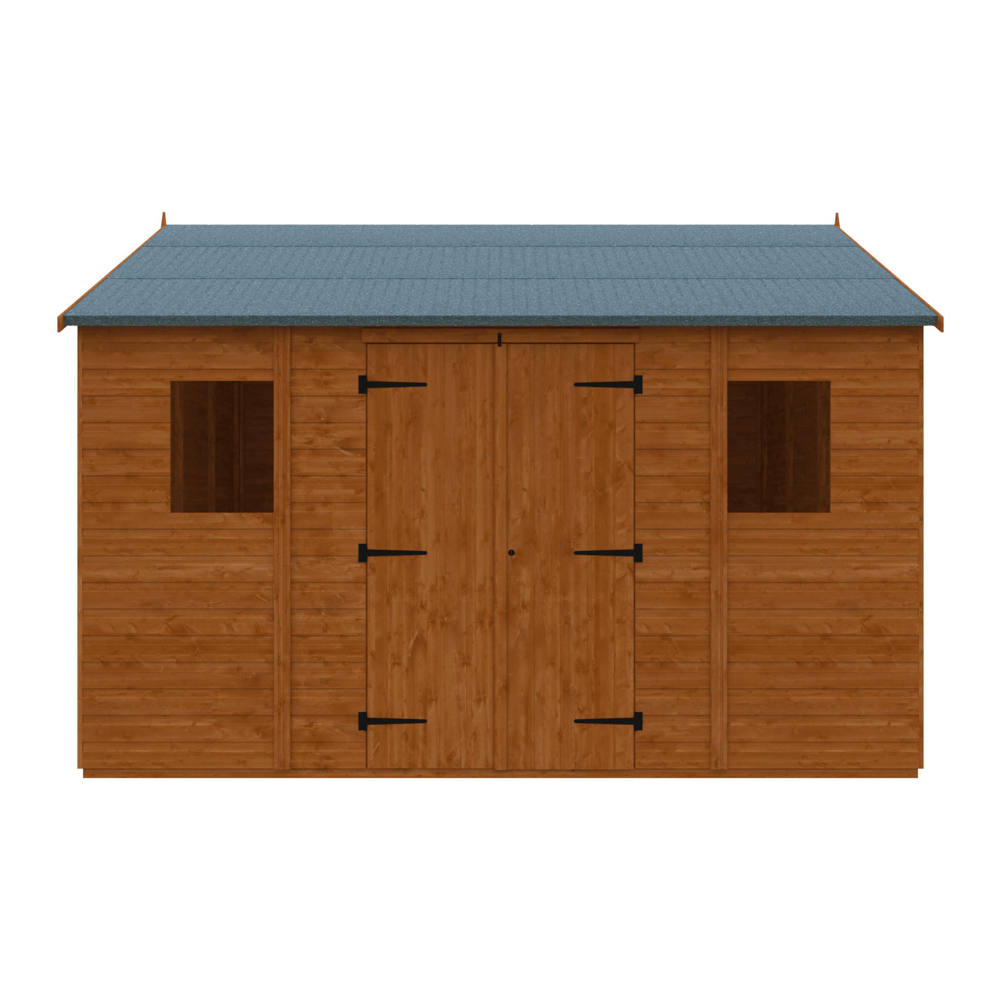The 12x10 Workman Apex Shed combines durability, style, and spacious storage for all your outdoor needs. Featuring a classic apex roof for extra headroom and efficient rain runoff, this shed is crafted from robust 12mm cladding with sturdy framing and lockable double doors. Finished in burnt orange with grey mineral felt roofing, it offers secure, weatherproof storage for tools, bikes, and garden essentials year-round.