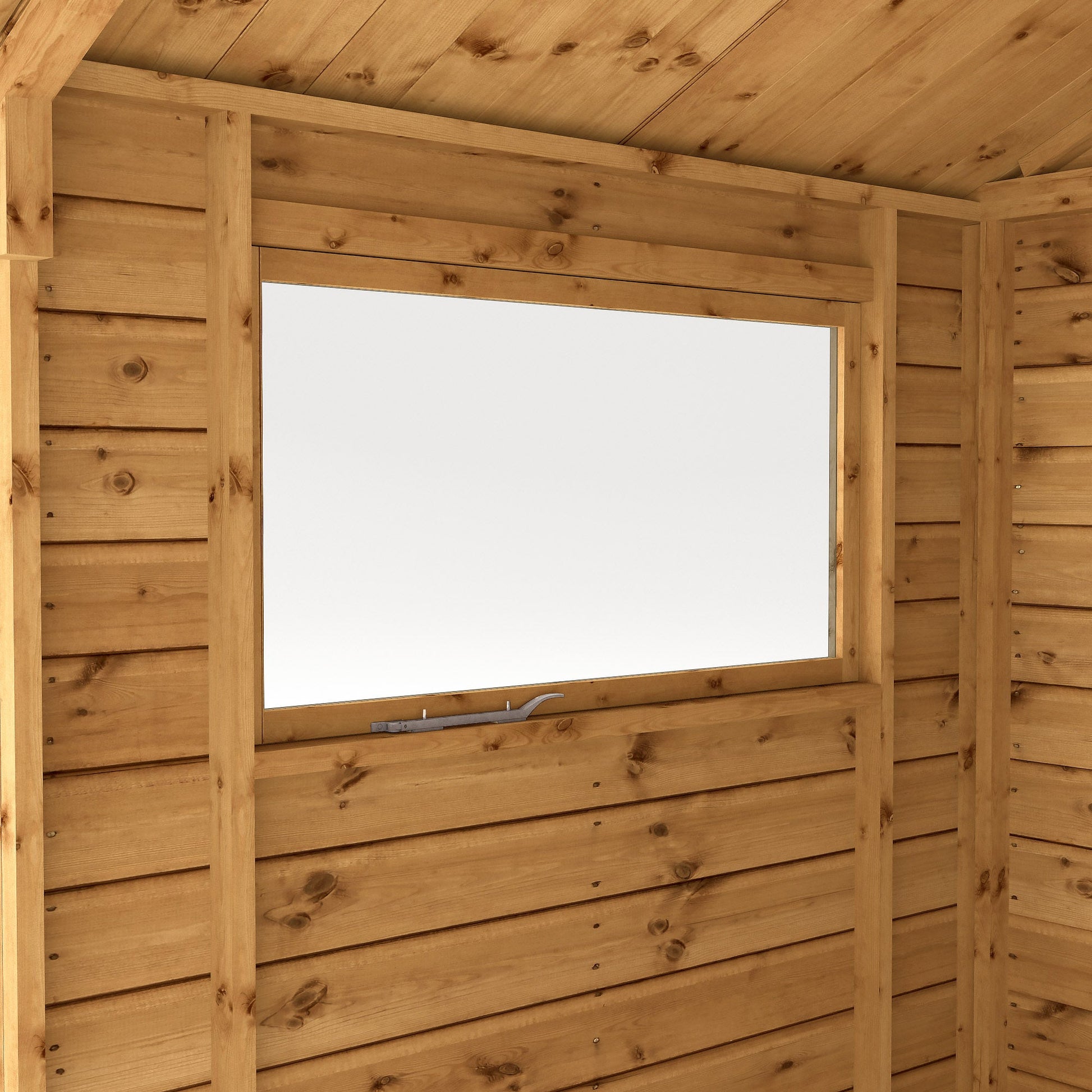 The 16ft x 10ft Shiplap Reverse Apex Modular Workshop provides a spacious, adaptable workspace ideal for DIY, storage, or hobbies. Its modular design lets you position doors and windows exactly where you want them, while two shatterproof styrene-glazed windows fill the space with light. Built in the UK from 12mm shiplap tongue & groove timber with a heavy-duty roof and floor, it’s durable, weather-resistant, and secure. Includes a 10-year anti-rot guarantee.