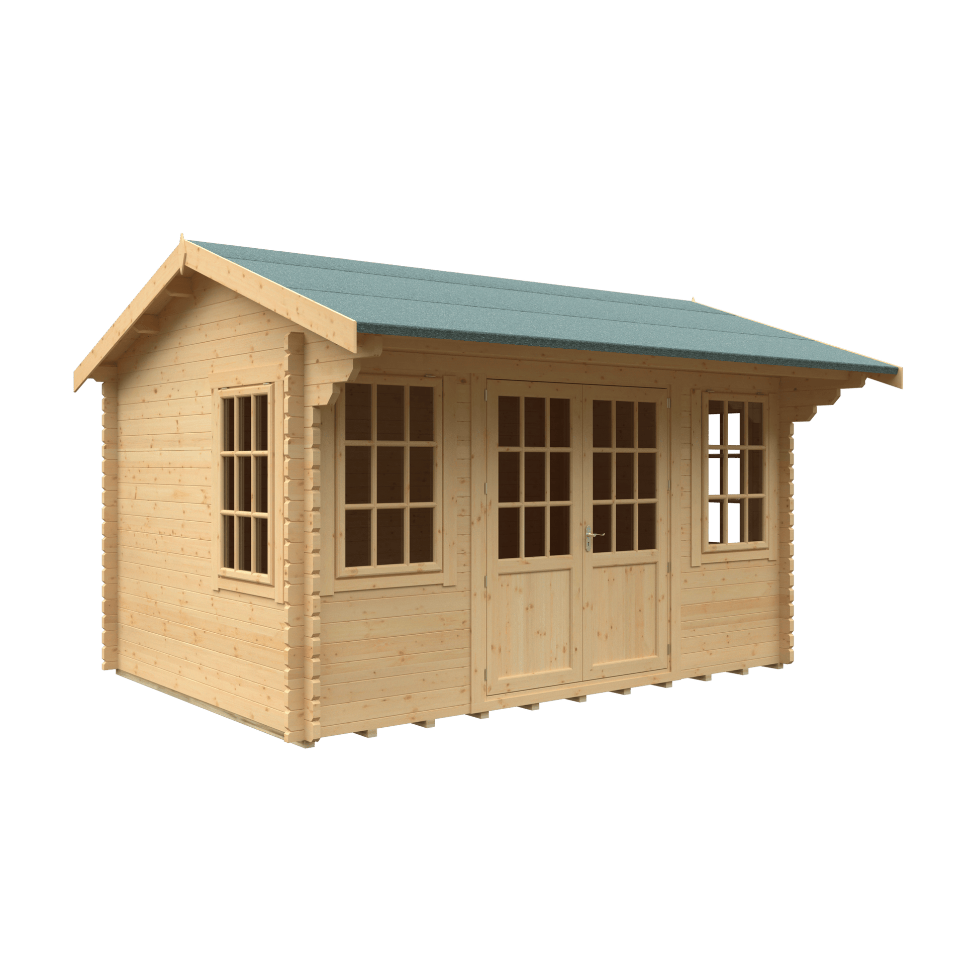 The 18x14 Dalton | 44mm Log Cabin is a robust and spacious outdoor storage solution. Built with 44mm thick tongue-and-groove logs, it provides excellent insulation and weather protection. Ideal for vehicles, garden tools, or outdoor equipment, it features full-glazed double doors, four windows, and a strong floor and roof. This versatile log cabin blends style, durability, and functionality, making it a long-lasting addition to any garden or yard.