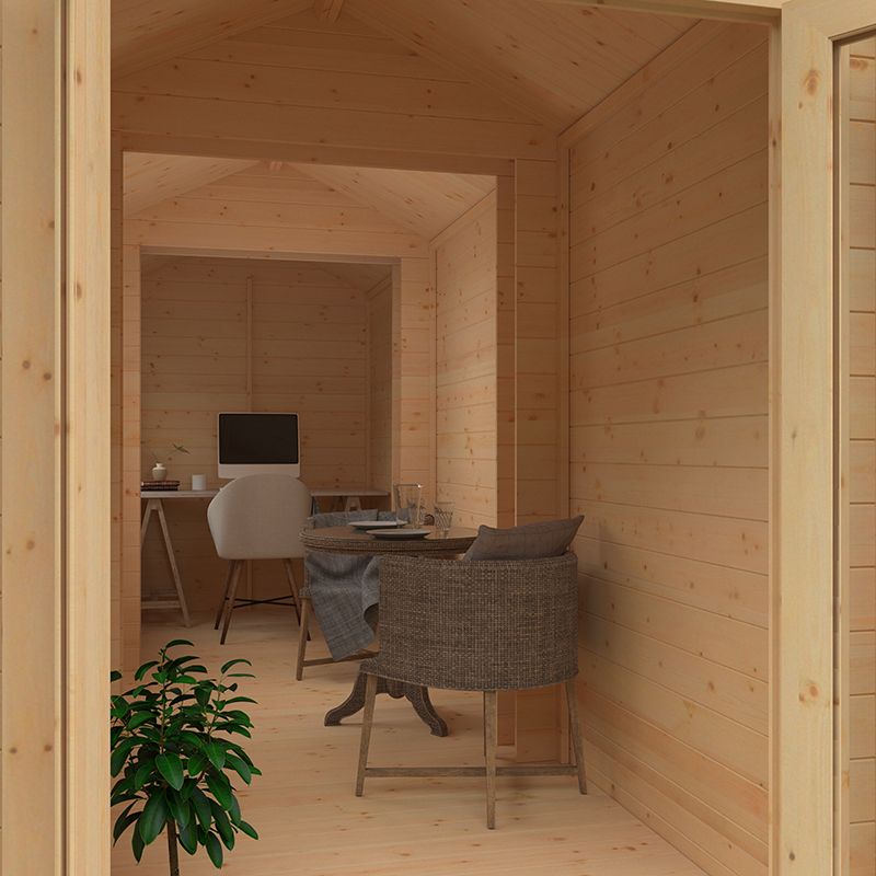 The 18x6 Oriana | Flex 19mm Garden Building offers a spacious and versatile solution for your outdoor needs. Crafted from slow-grown softwood, it features 19mm interlocking logs for durability and insulation, full-glazed double doors, and opening portrait windows for light and ventilation. A 12mm tongue-and-groove floor ensures a solid base, while the untreated timber finish allows for custom staining or painting to suit your garden style.