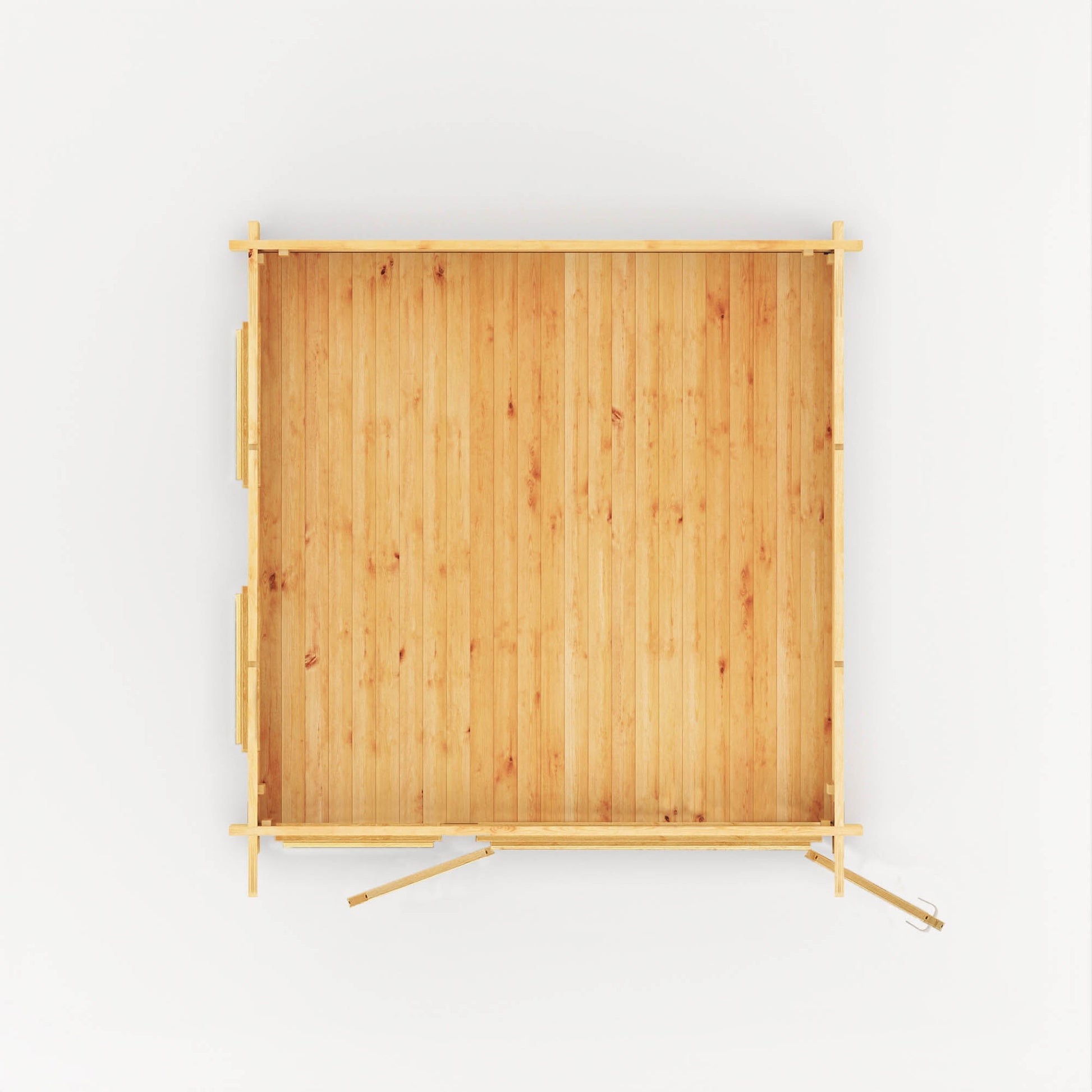 Available in 28mm, 34mm, or 44mm log thicknesses, this cabin offers enhanced insulation and noise reduction. Built from 16mm tongue and groove boards, the roof and floor are sturdy and durable, with premium roofing felt for weather protection. An additional vent ensures proper ventilation.