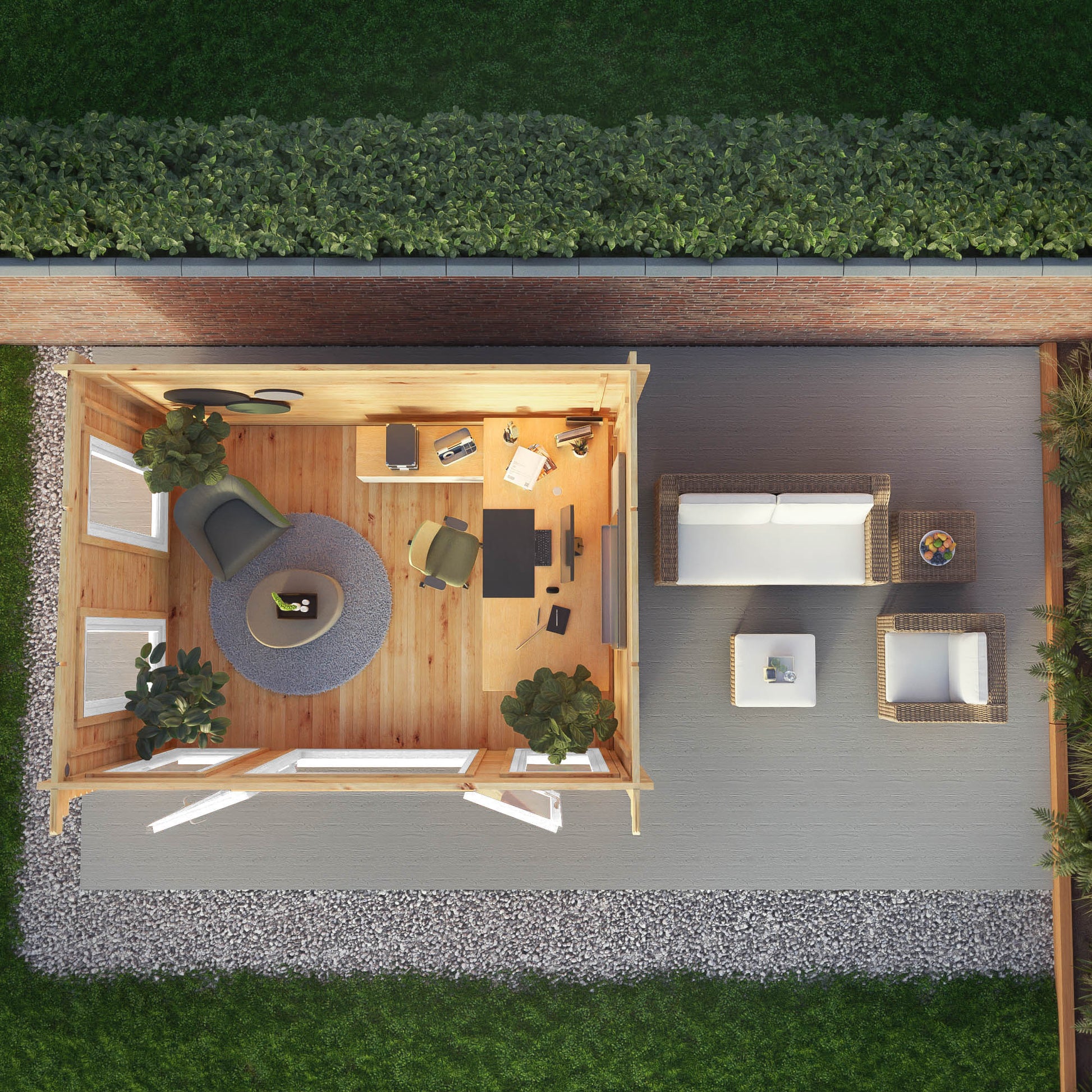 The 4m x 3m Studio Pent Log Cabin features a contemporary pent roof, four full-length UPVC windows, and glazed double doors—perfect for creating a light-filled garden retreat. Built with premium 44mm interlocking logs and 16mm tongue & groove floor and roof panels, this cabin offers year-round comfort, energy efficiency, and reduced noise. A low-maintenance, secure, and stylish solution for a home office, studio, or relaxation space.