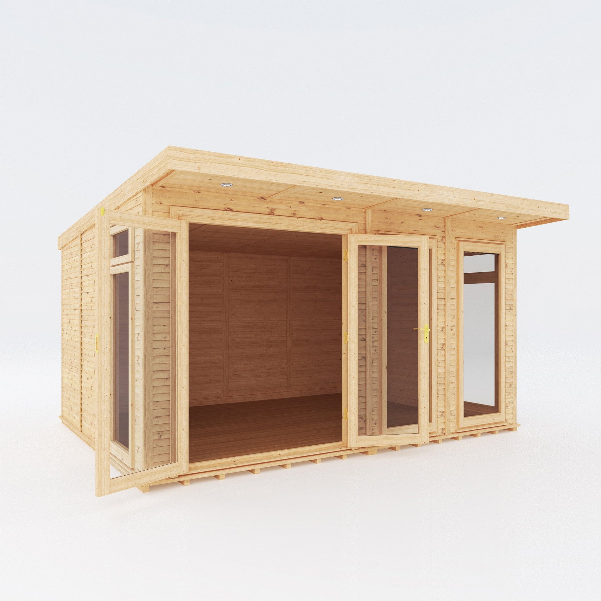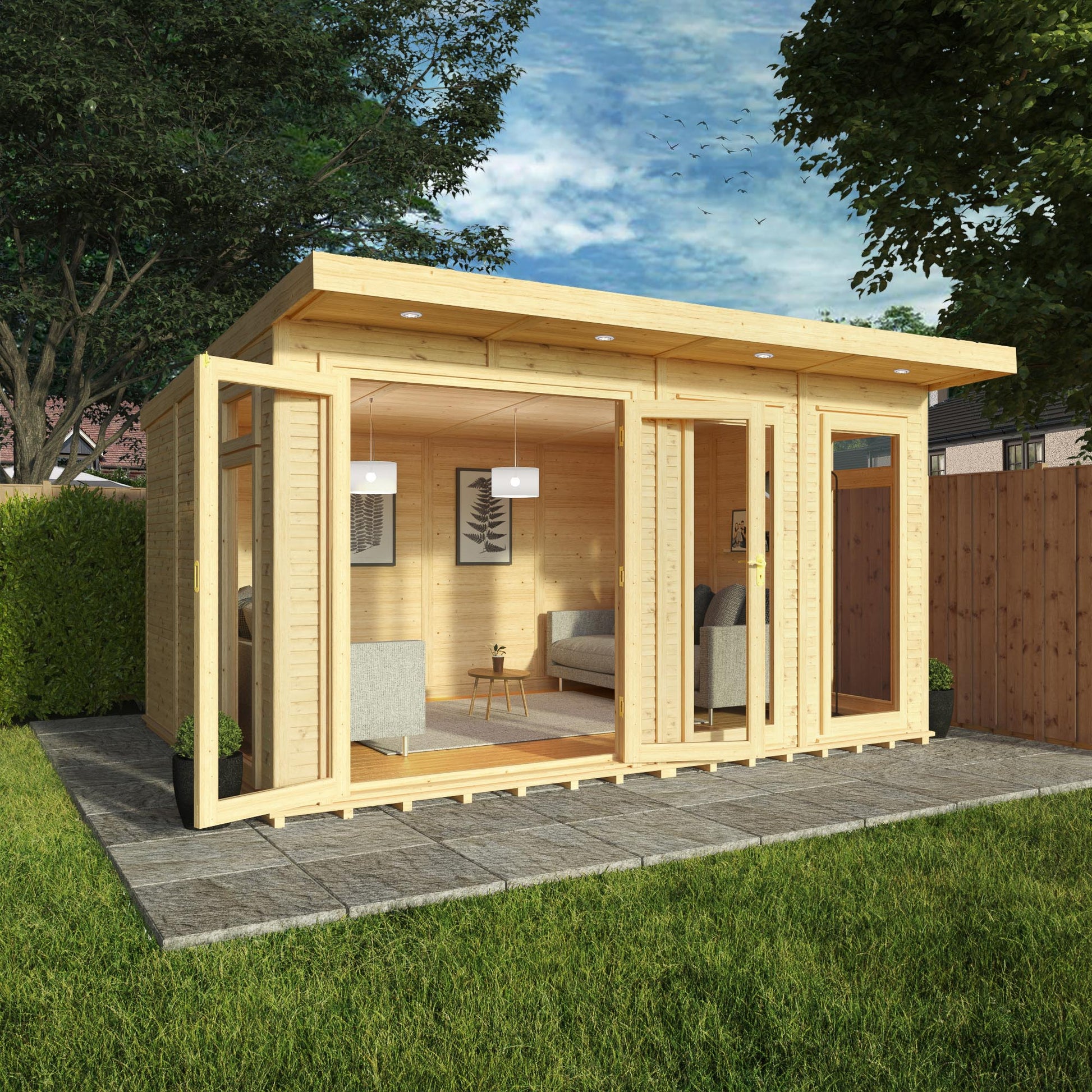 The 4 x 3m Mercia Insulated Garden Room provides versatile, year-round space with superior Eco-quilt insulation in walls, roof, and floor. Featuring triple-layer walls, double-glazed argon-filled windows, and a durable EPDM rubber roof, it ensures warmth and weather protection. Crafted from sustainable UK timber, this garden room stands under 2.5m, typically avoiding planning permission. Professional installation included for a hassle-free experience.