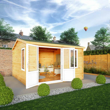 The 4m x 4m Home Office Elite Log Cabin offers a spacious yet cozy garden retreat, perfect for working or relaxing. Featuring an Alpine-style apex roof, double-glazed UPVC doors and windows, and 44mm thick interlocking logs, this cabin ensures year-round comfort, energy efficiency, and security. Its durable tongue & groove roof and floor, plus a 10-year anti-rot guarantee, make it a stylish, low-maintenance addition to your outdoor space.
