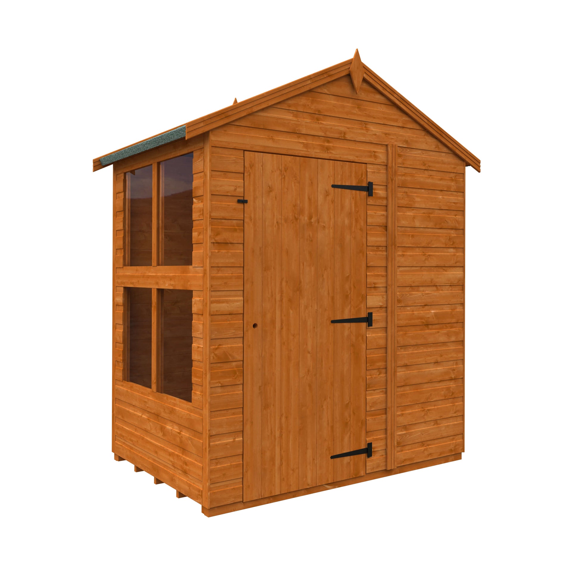 Upgrade your garden space with the 4x6 Flex Apex Sunroom, combining elegance, functionality, and durability. Its apex roof design creates a bright, airy interior, while large glazed windows allow natural light to fill the room. Constructed from 12mm tongue & groove cladding and a 28mm x 44mm frame, this sunroom is perfect as a garden room, home office, hobby space, or outdoor retreat.