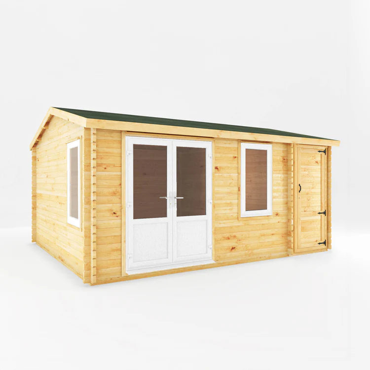 Transform your garden into a stylish retreat with the 5.1m x 4m Home Office Elite Log Cabin with Side Shed. Featuring UPVC doors and windows, 44mm thick logs, and double glazing, this cabin offers year-round comfort. Its traditional apex roof, opening windows, and practical side shed make it the ideal space for work, relaxation, or storage. Durable, secure, and elegant—perfect for modern garden living.