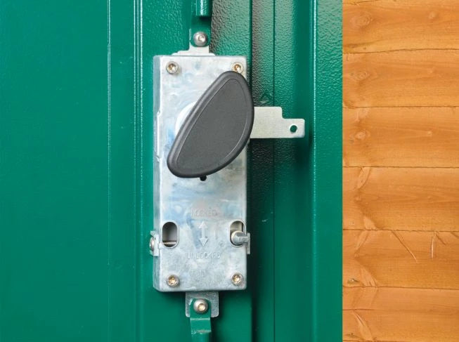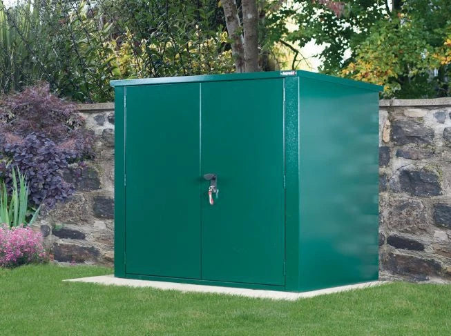 Protect your valuable belongings with the Secure Store shed, equipped with a robust 3 point locking system and a pick and drill resistant euro cylinder lock. This all metal shed from Asgard is built to last, weighing a sturdy 12 stone. Its extra wide double door opening allows for easy loading and storage of even large garden items. With a full metal, weatherproof construction and a bolted metal floor, this shed provides maximum security. The vented roof system helps prevent condensation, ensuring your equipment remains both safe and dry, regardless of the weather. Made in the UK, the Secure Store offers long-lasting storage with minimal maintenance. Rest assured with a 10 Year Warranty with all Asgard sheds.