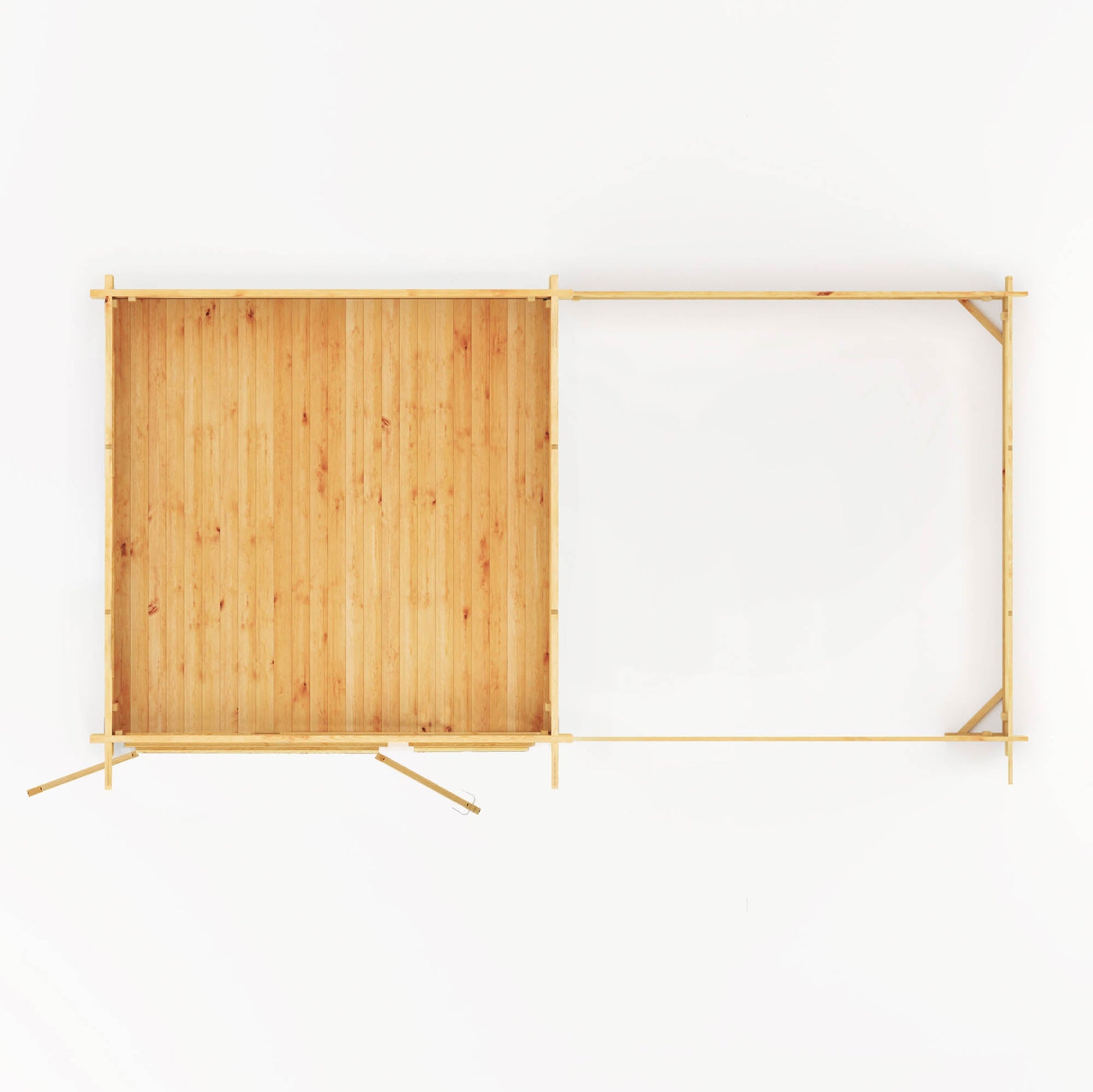 With the added advantage of a slatted area, this versatile extension can be positioned on either side of your cabin, offering additional space for unwinding or entertaining. Whether you're enjoying outdoor dining or immersing yourself in a book amidst the tranquil chirping of birds, this feature elevates your log cabin experience.