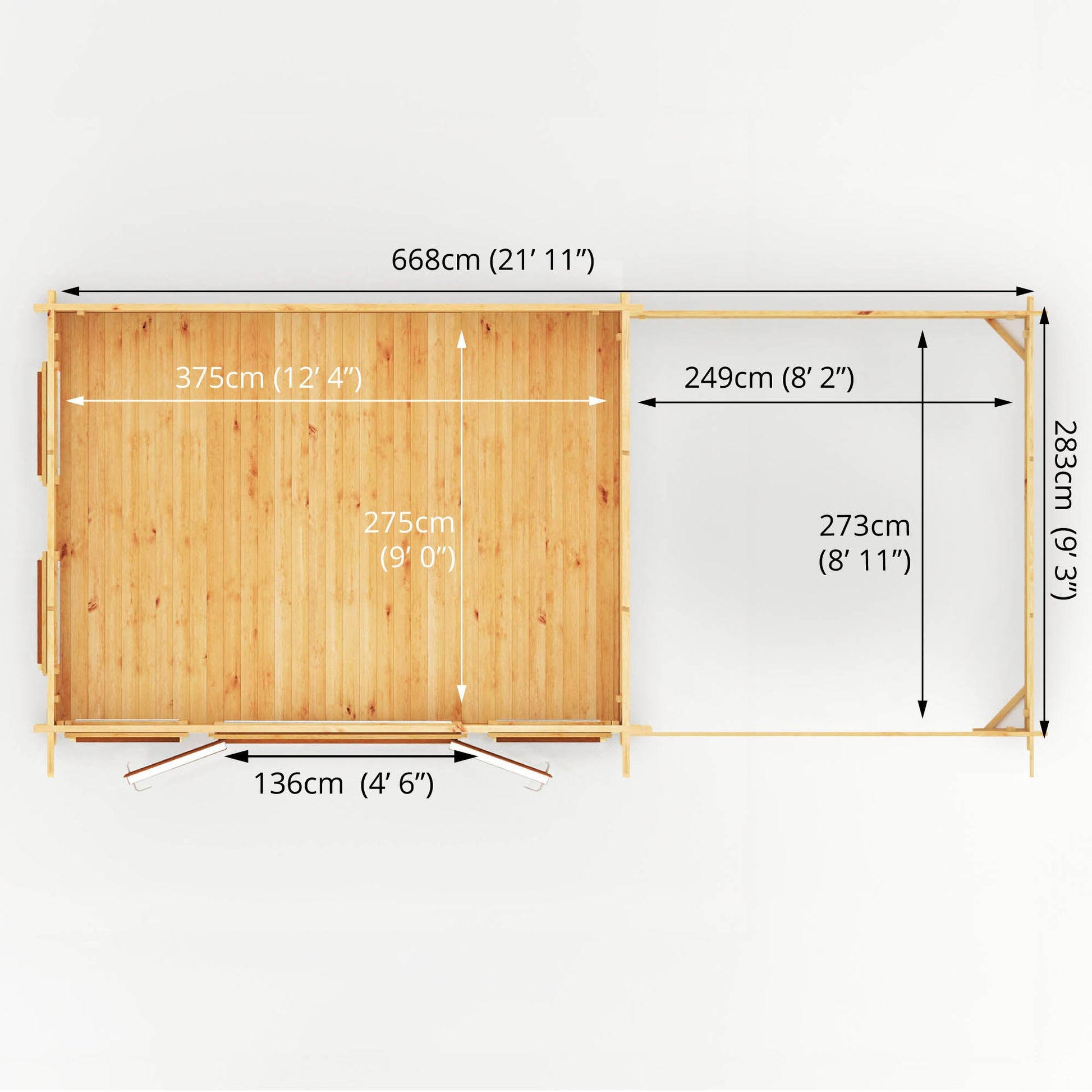 - Spacious 7m x 3m cabin with an optional 28mm thick slatted area on either side