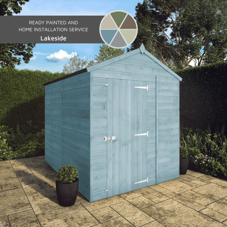 The 8ft x 6ft Shiplap Apex Windowless Shed delivers secure, versatile, and durable storage at great value. Made in the UK from sustainably sourced timber, its modular design lets you position the door where you need it. The windowless build keeps valuables hidden, while 12mm shiplap tongue & groove cladding and a strong roof and floor provide lasting strength. Includes all fixtures, fittings, and a 10-year anti-rot guarantee for peace of mind.