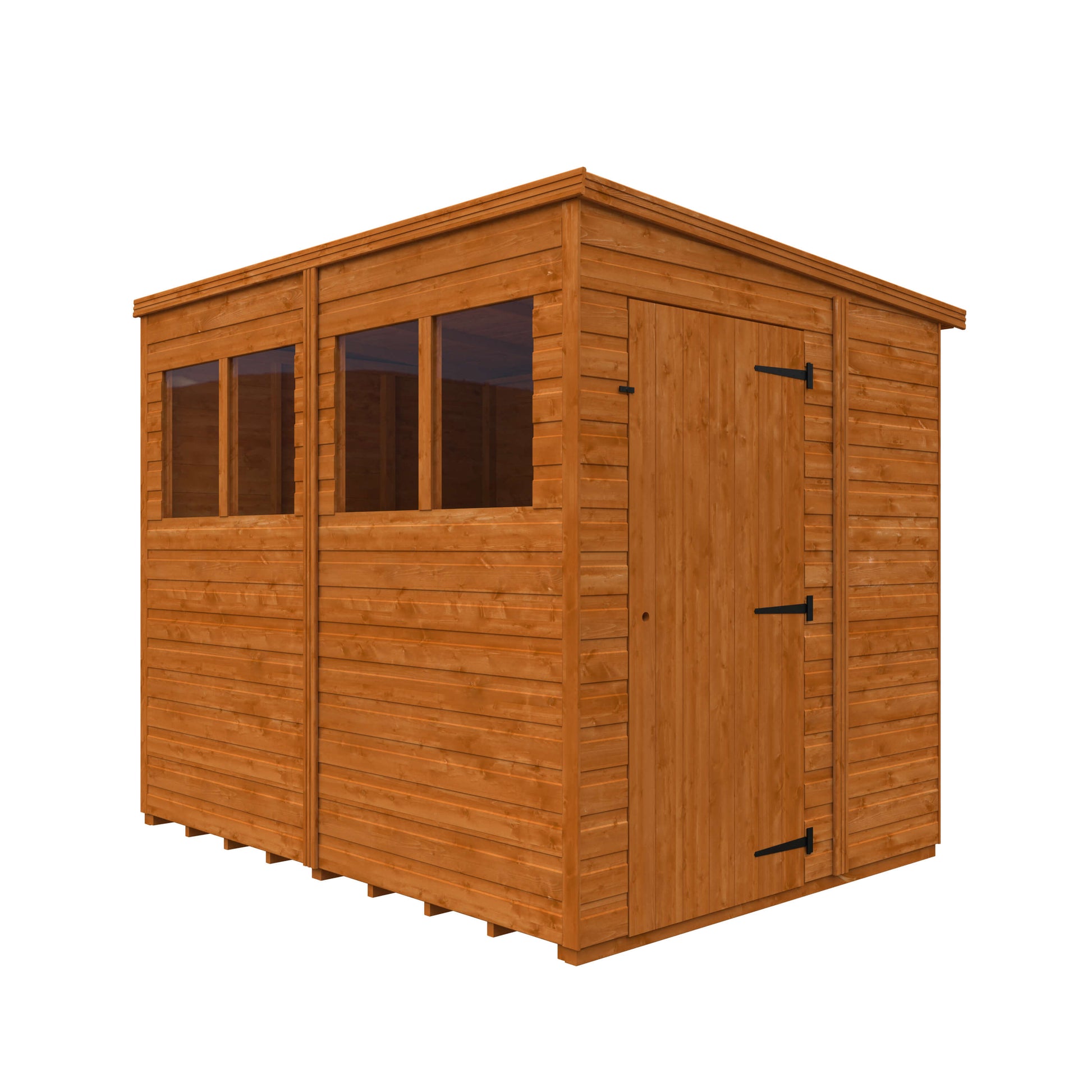 The 8x6 Flex Pent Shed offers a versatile and practical storage solution for your garden, backyard, or outdoor space. Designed with a space-efficient pent roof, this shed combines modern style with functionality, making it perfect for storing tools, garden equipment, or creating a small workspace. Its robust 12mm tongue & groove cladding and burnt orange water-based dip treatment ensure excellent durability and weather resistance.