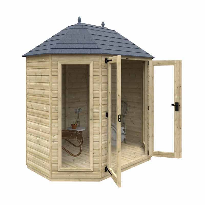 Enhance your garden with the 8x6 Tanalised Octagonal Full Pane Shed, combining elegance and practicality. Crafted from durable tanalised timber with full-pane windows and a secure double door, it fills the interior with natural light while resisting rot and decay. Perfect as a summerhouse, workshop, or stylish storage solution, its unique octagonal design adds charm and maximizes space, creating a versatile, long-lasting garden feature.