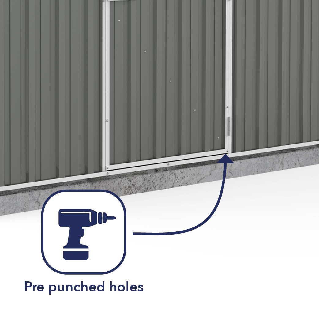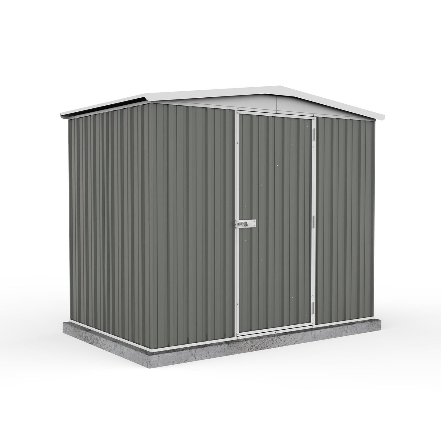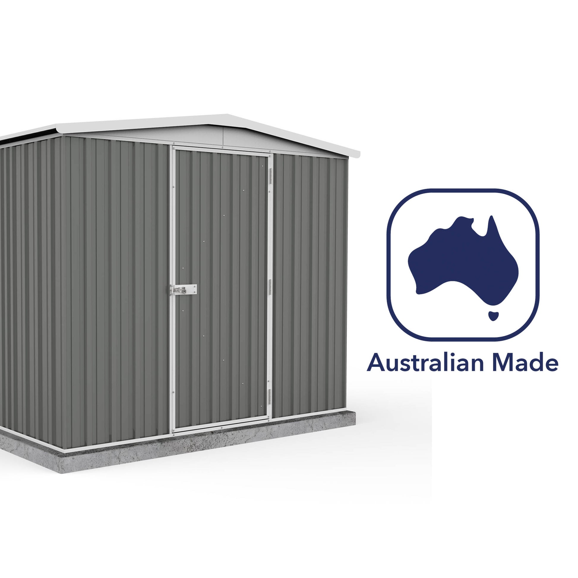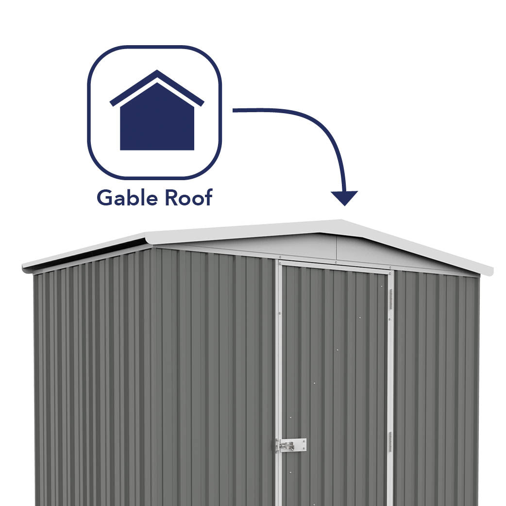 The traditional apex roof design not only provides ample headroom for tall equipment but also ensures efficient water drainage to protect your belongings from the elements. 2 Crafted from high-quality BlueScope steel with a durable Woodland Grey coating, this shed boasts a sleek appearance that is resistant to rust and corrosion.