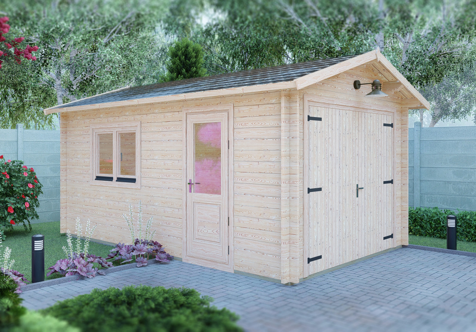 Upgrade your garden with the Shire Garage 10 x 17ft Double Door Apex Log Cabin. Built from 44mm interlocking timber, this robust cabin features an apex roof, toughened double-glazed windows, and a part-glazed side door for natural light. High-quality silver handles and mortice locks secure the double and side doors. Supplied untreated, it’s ready for your choice of paint or stain, creating a versatile and durable outdoor space.