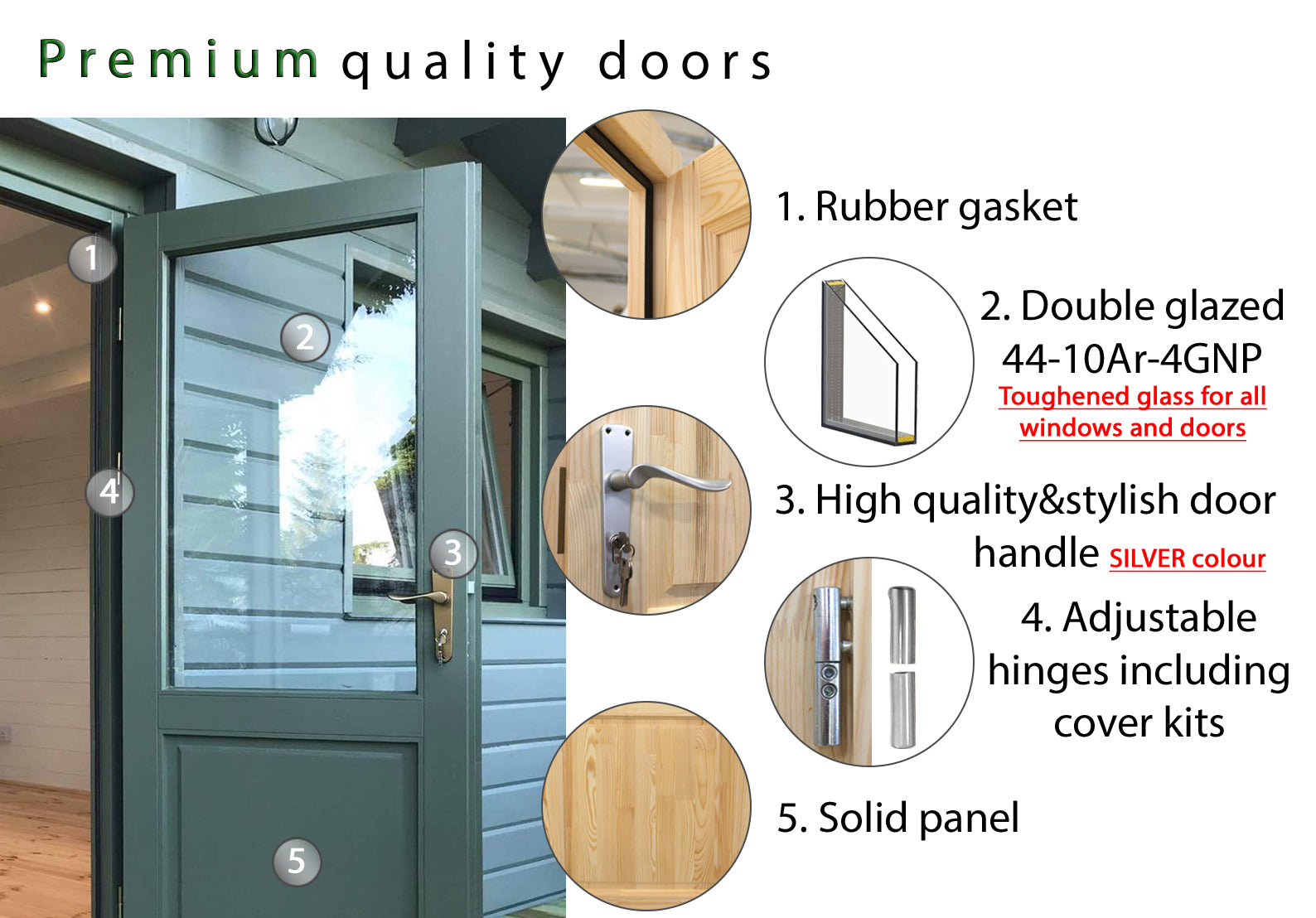 | Doors | Double door & part-glazed side door |