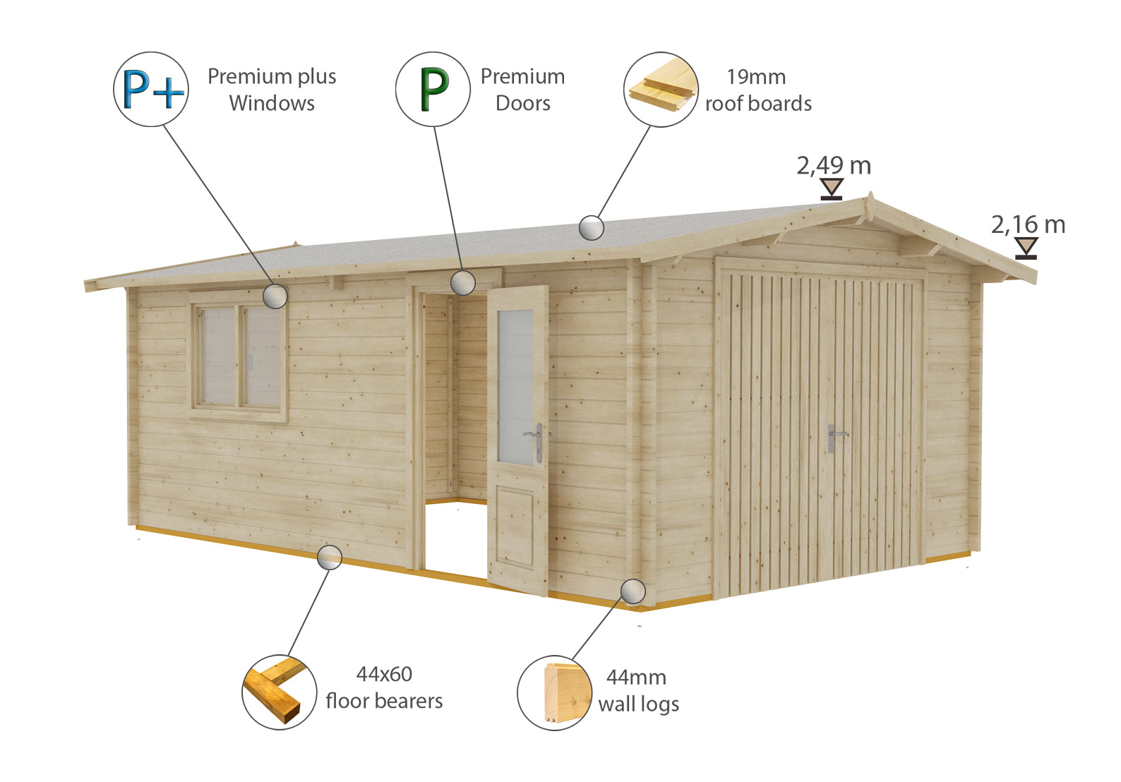 - Robust 44mm log walls for strength and insulation