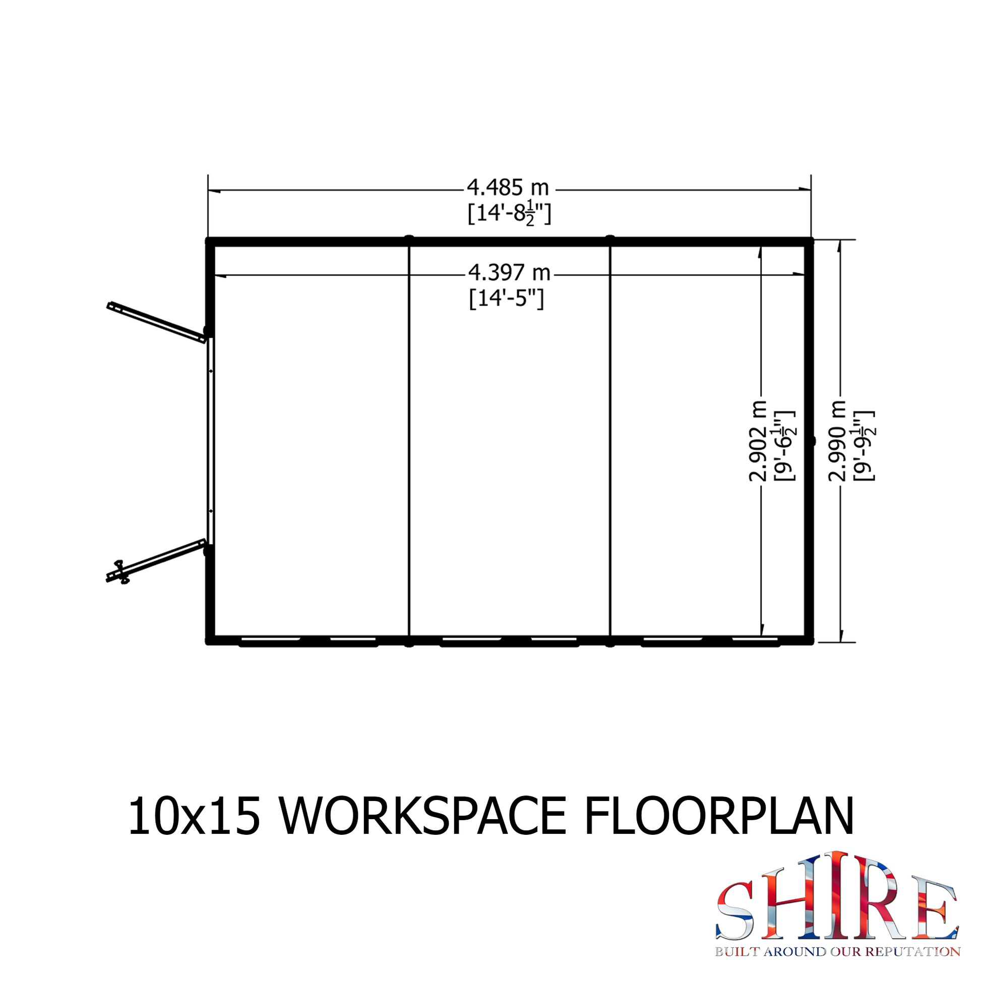 The Atlas 10 x 15 DD Shiplap Garden Shed from ShireGB offers the ideal combination of space, strength, and security. With a central walkway, large single door, and high eaves height, it provides easy access and ample headroom. Crafted from durable 12mm shiplap tongue and groove cladding, the shed ensures long-lasting performance. The double doors feature secure locking mechanisms, and the spacious 10 x 15 design is perfect for storage, tools, or a small workshop, all with easy assembly.