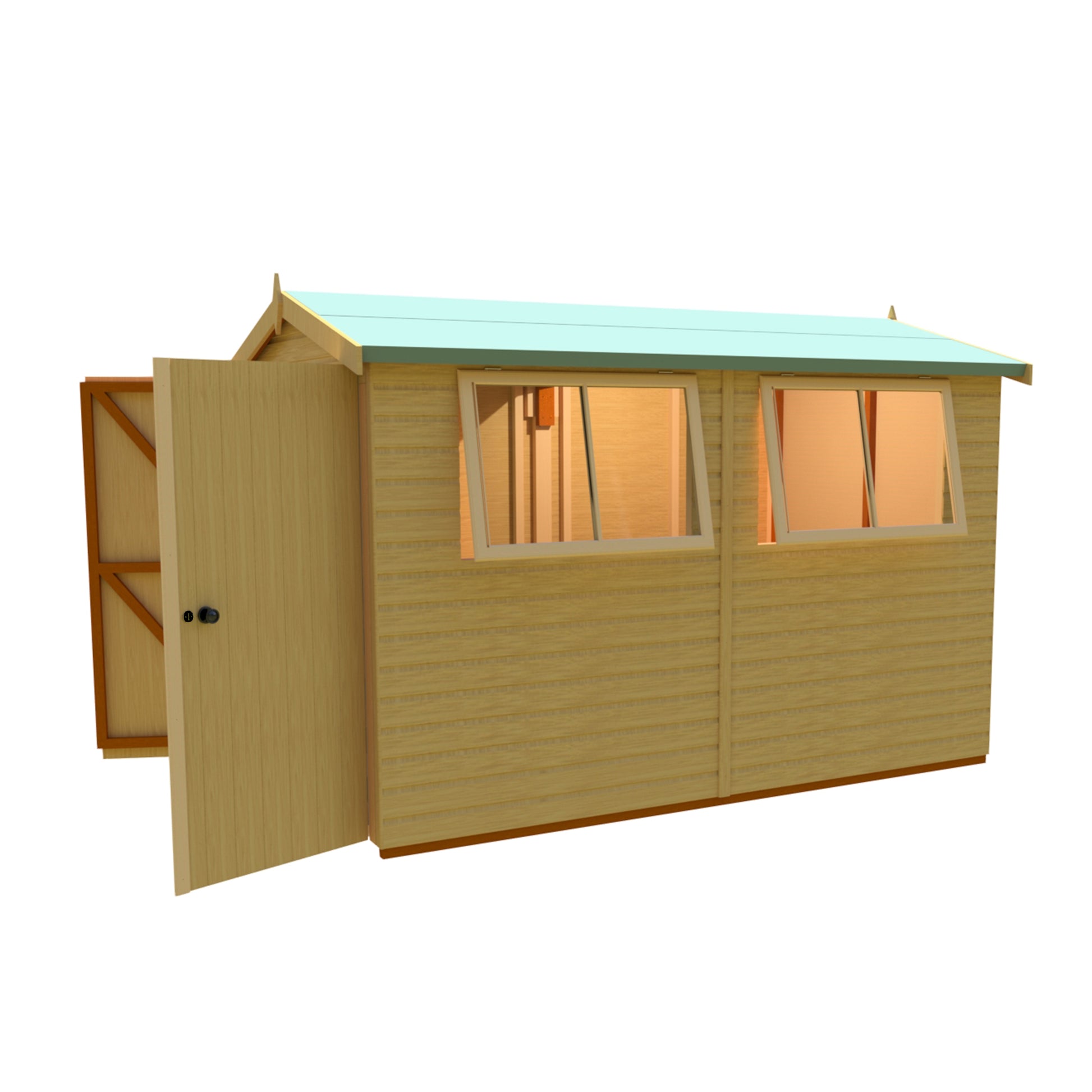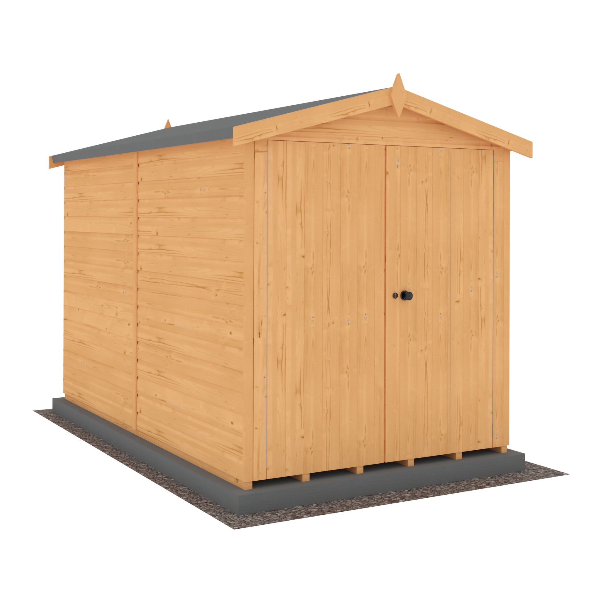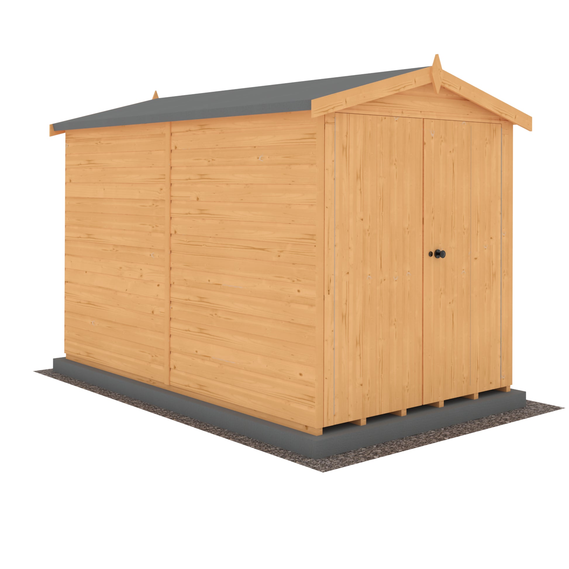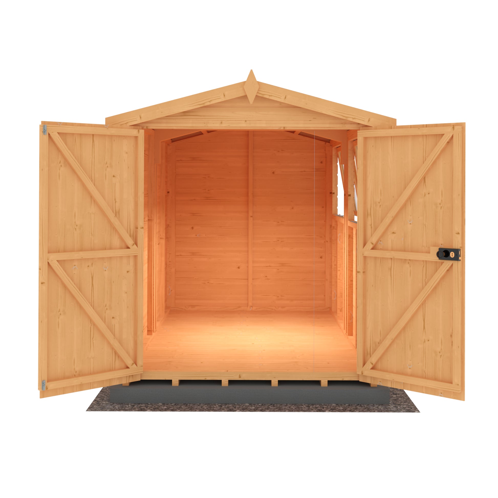 The Atlas 10 x 6 Double Door Shiplap Shed from ShireGB offers the perfect balance of functionality and security. Constructed with 12mm thick shiplap tongue and groove cladding, it provides a sturdy and weather-resistant structure. The 44mm x 44mm framing adds strength and longevity. The apex roof design allows for efficient water runoff, and the double doors with rim locks and full-length hidden hinges ensure security. High-level fixed windows let in natural light while maintaining privacy.