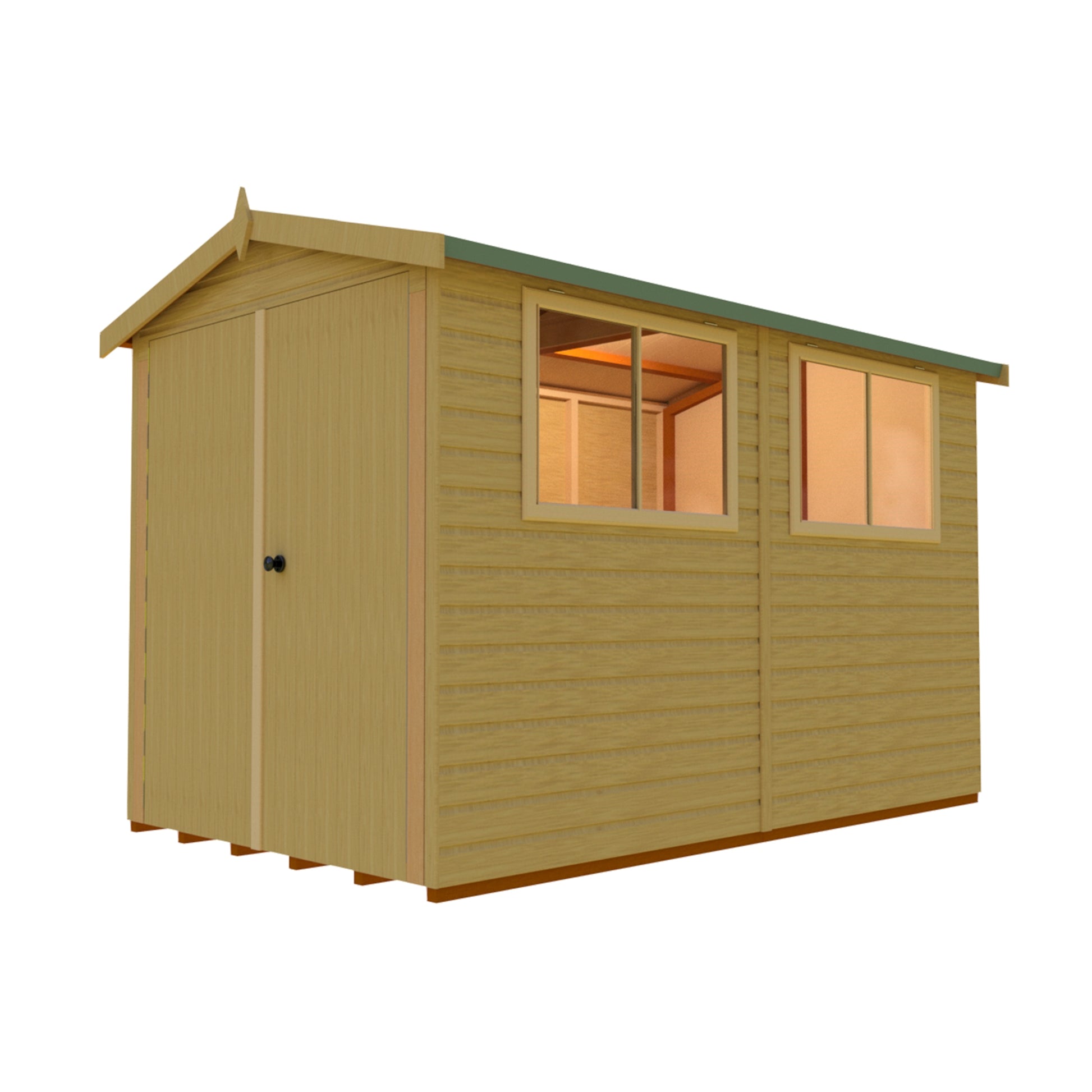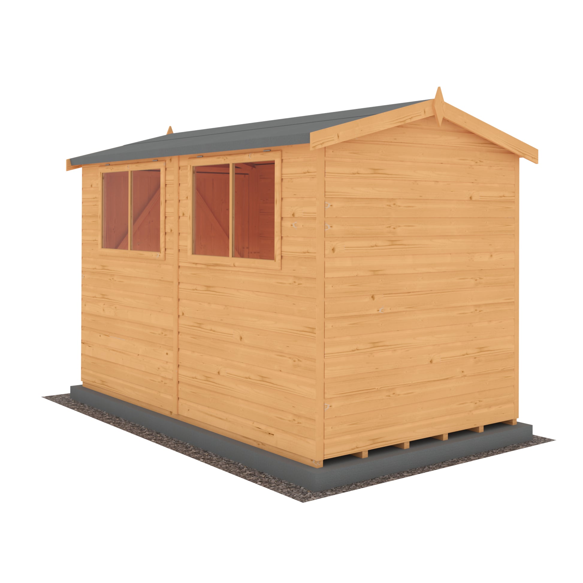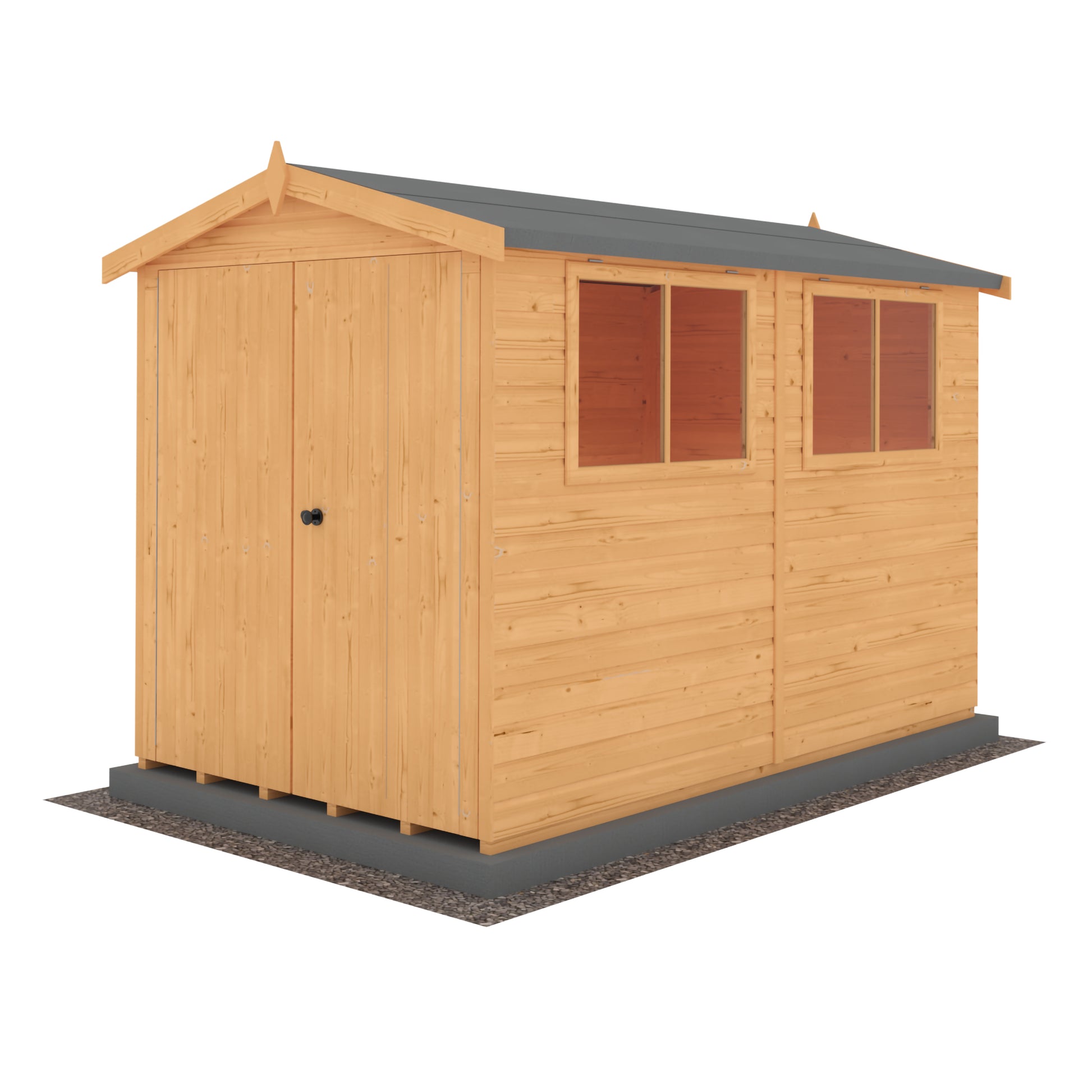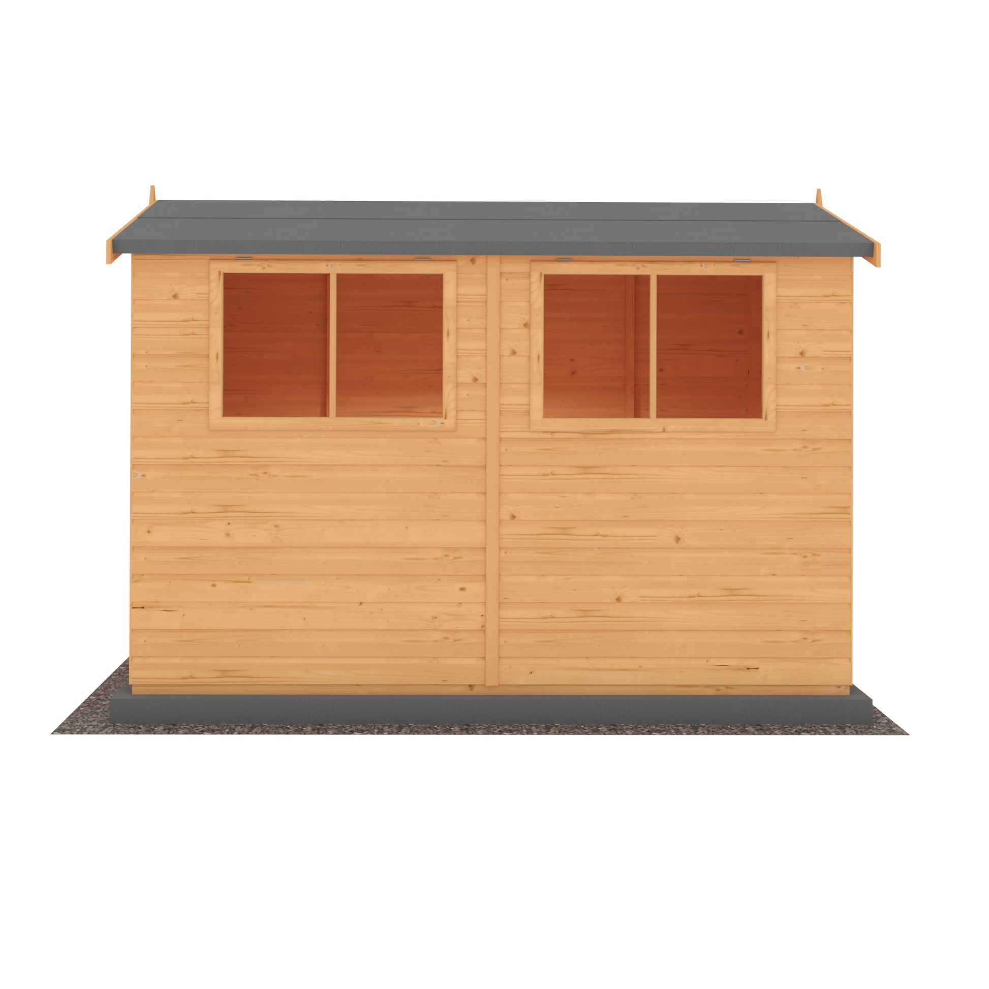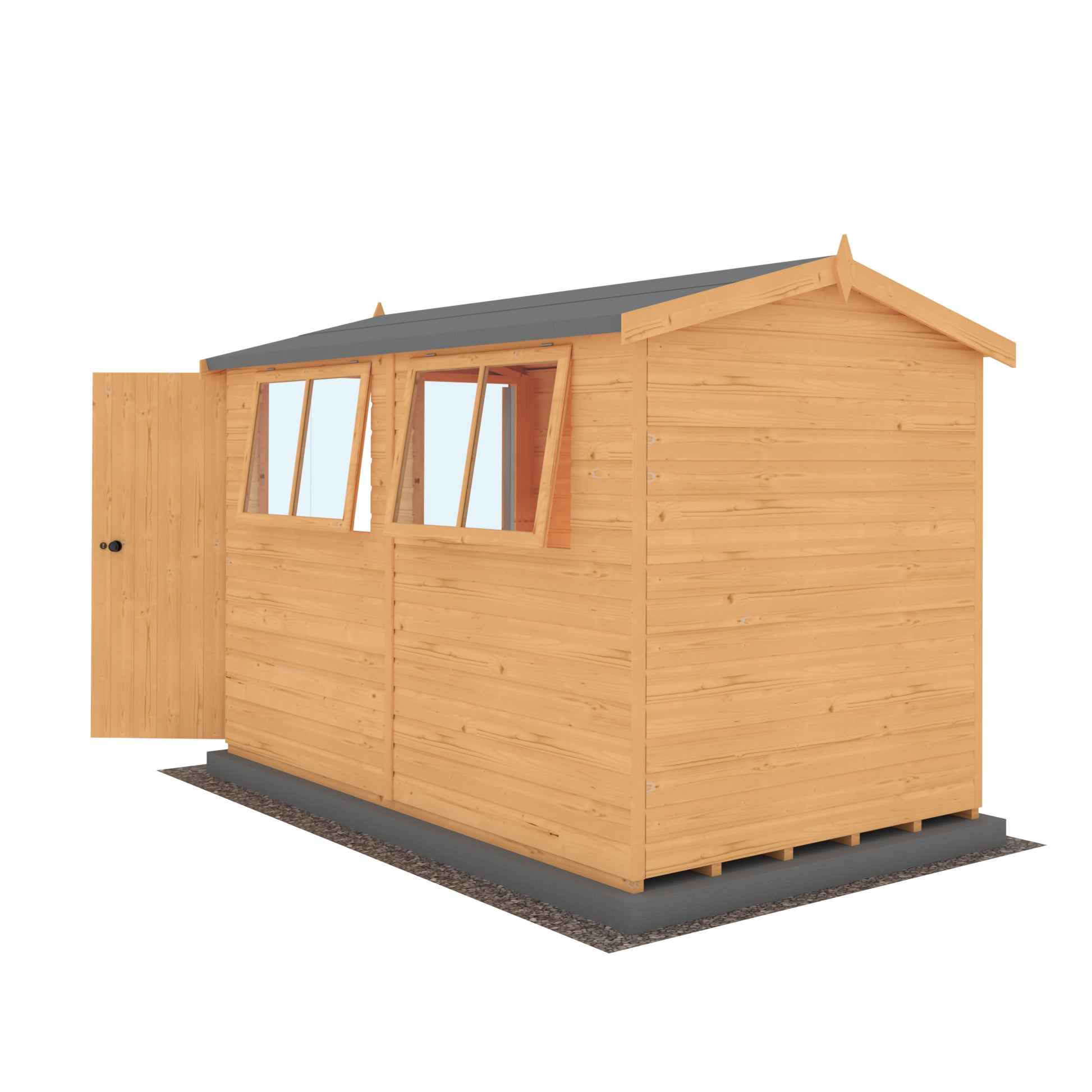 The Atlas 10 x 6 Double Door Shiplap Shed from ShireGB offers the perfect balance of functionality and security. Constructed with 12mm thick shiplap tongue and groove cladding, it provides a sturdy and weather-resistant structure. The 44mm x 44mm framing adds strength and longevity. The apex roof design allows for efficient water runoff, and the double doors with rim locks and full-length hidden hinges ensure security. High-level fixed windows let in natural light while maintaining privacy.