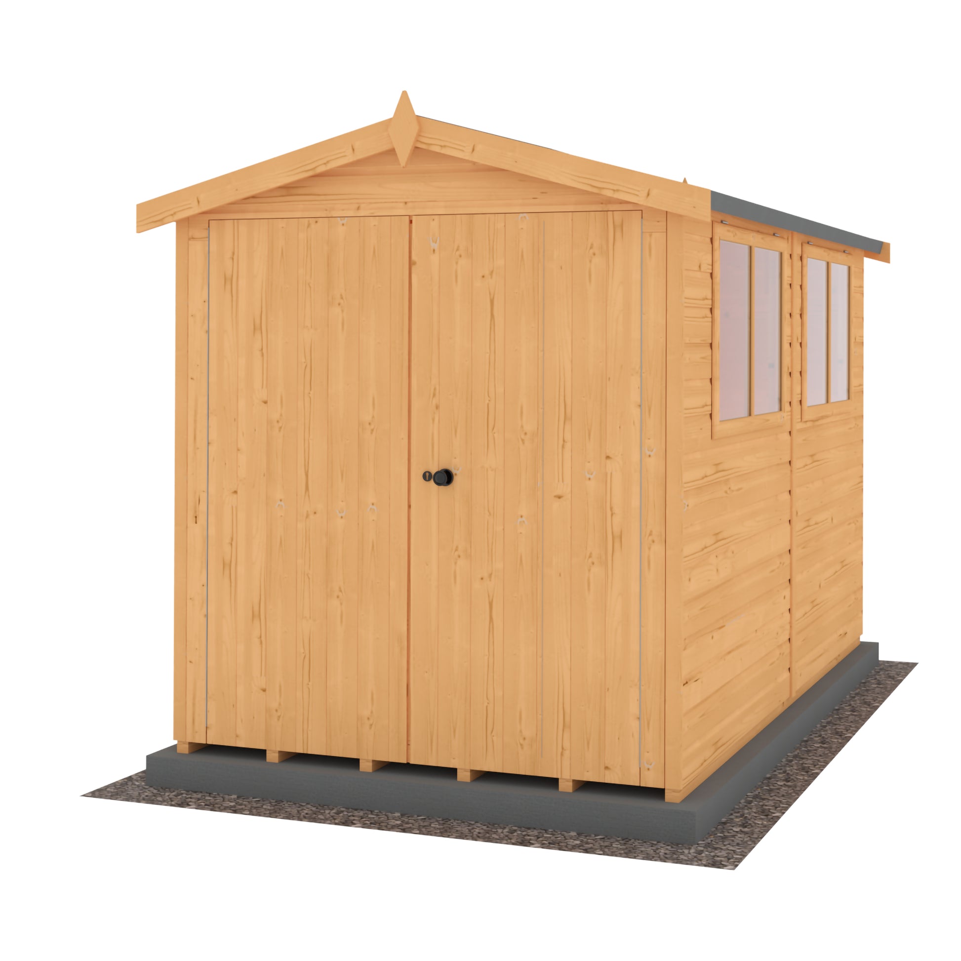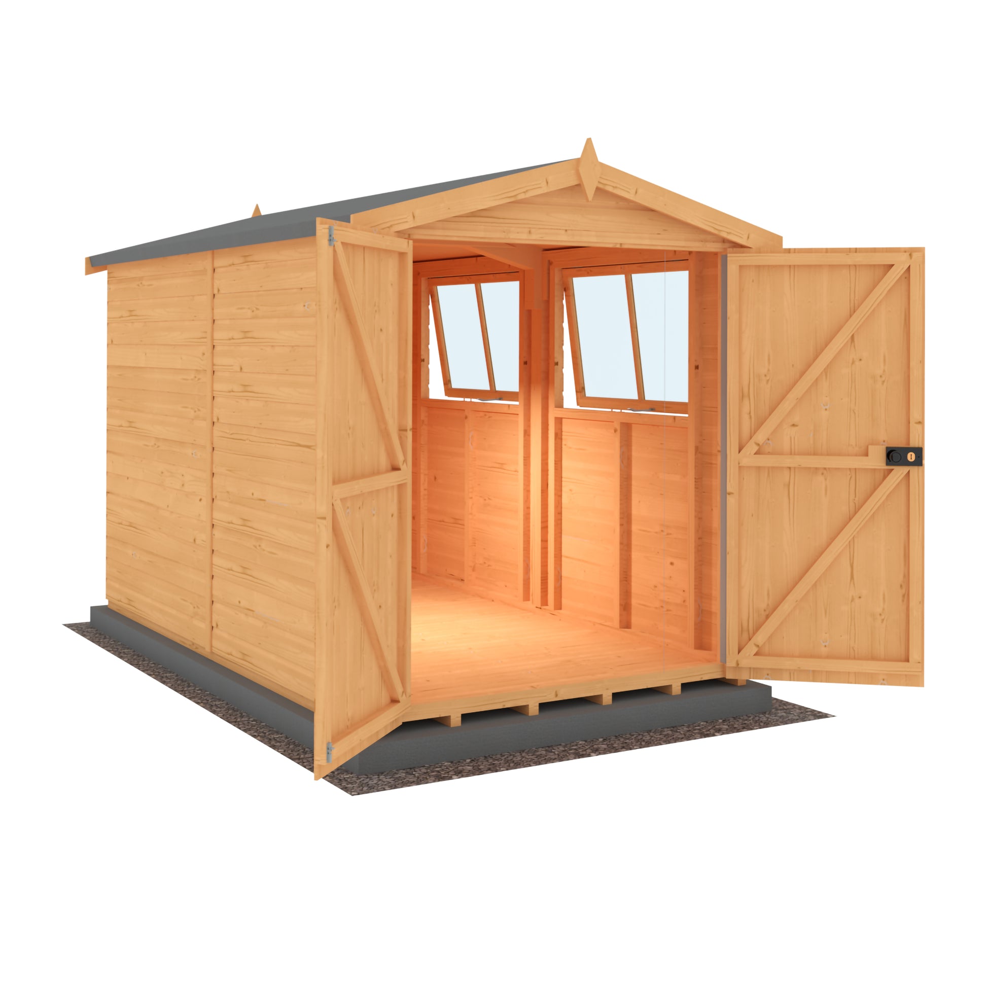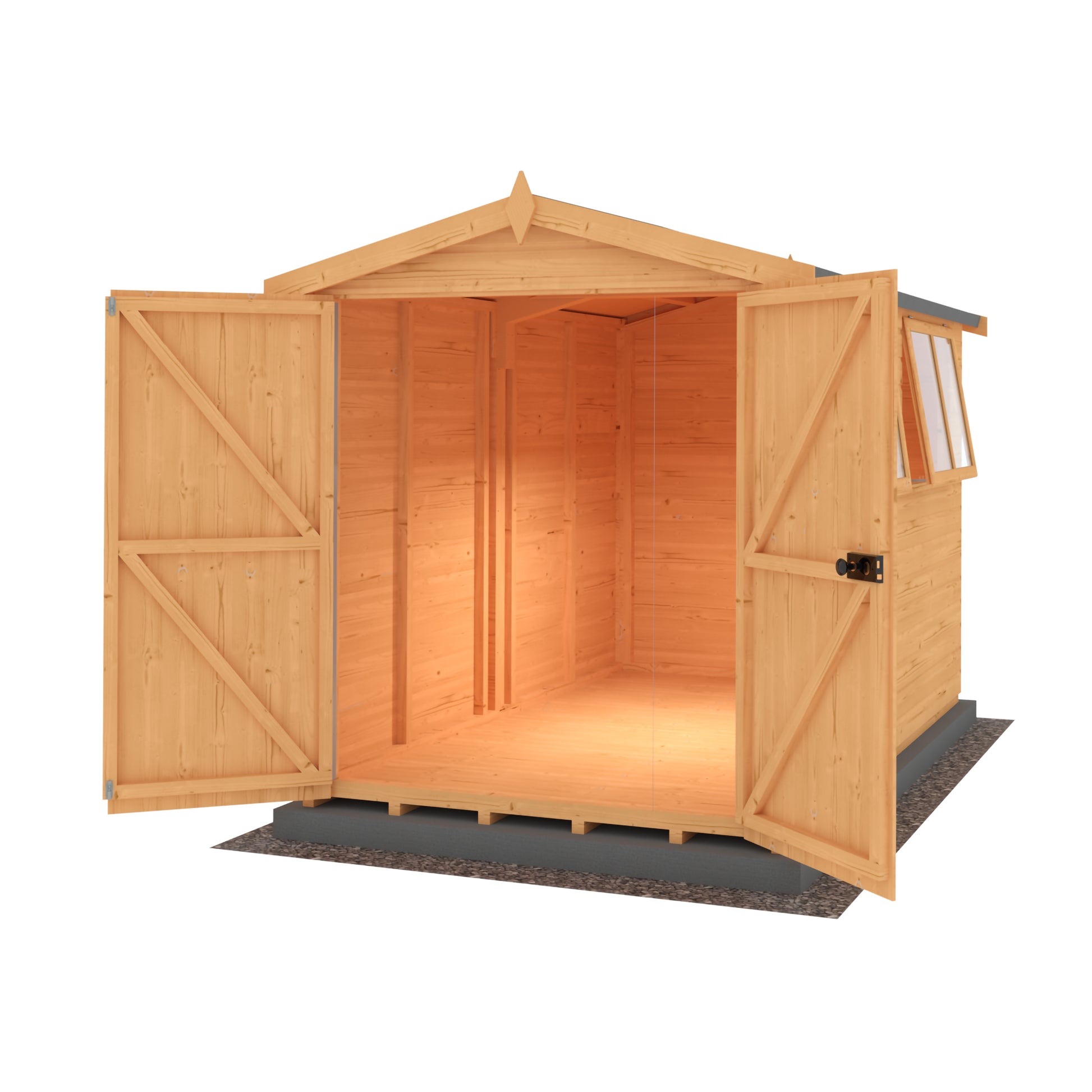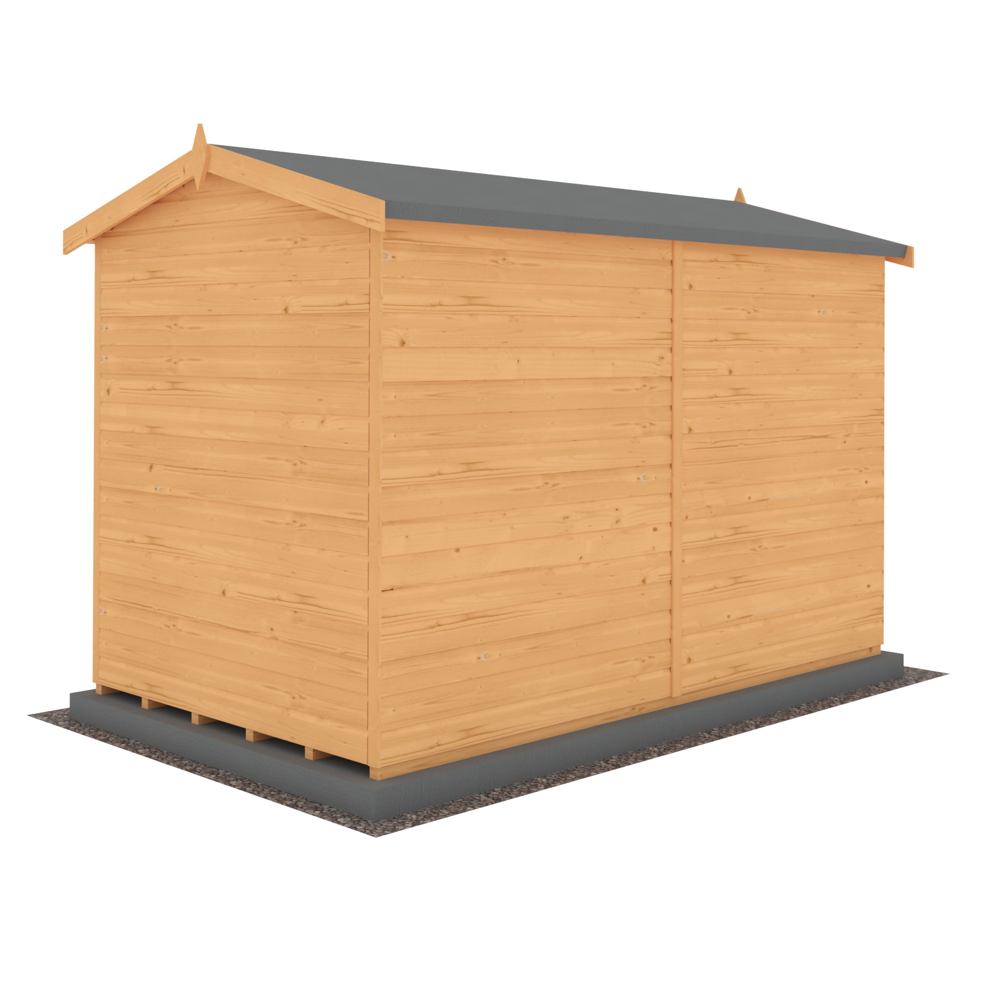 The Atlas 10 x 6 Double Door Shiplap Shed from ShireGB offers the perfect balance of functionality and security. Constructed with 12mm thick shiplap tongue and groove cladding, it provides a sturdy and weather-resistant structure. The 44mm x 44mm framing adds strength and longevity. The apex roof design allows for efficient water runoff, and the double doors with rim locks and full-length hidden hinges ensure security. High-level fixed windows let in natural light while maintaining privacy.