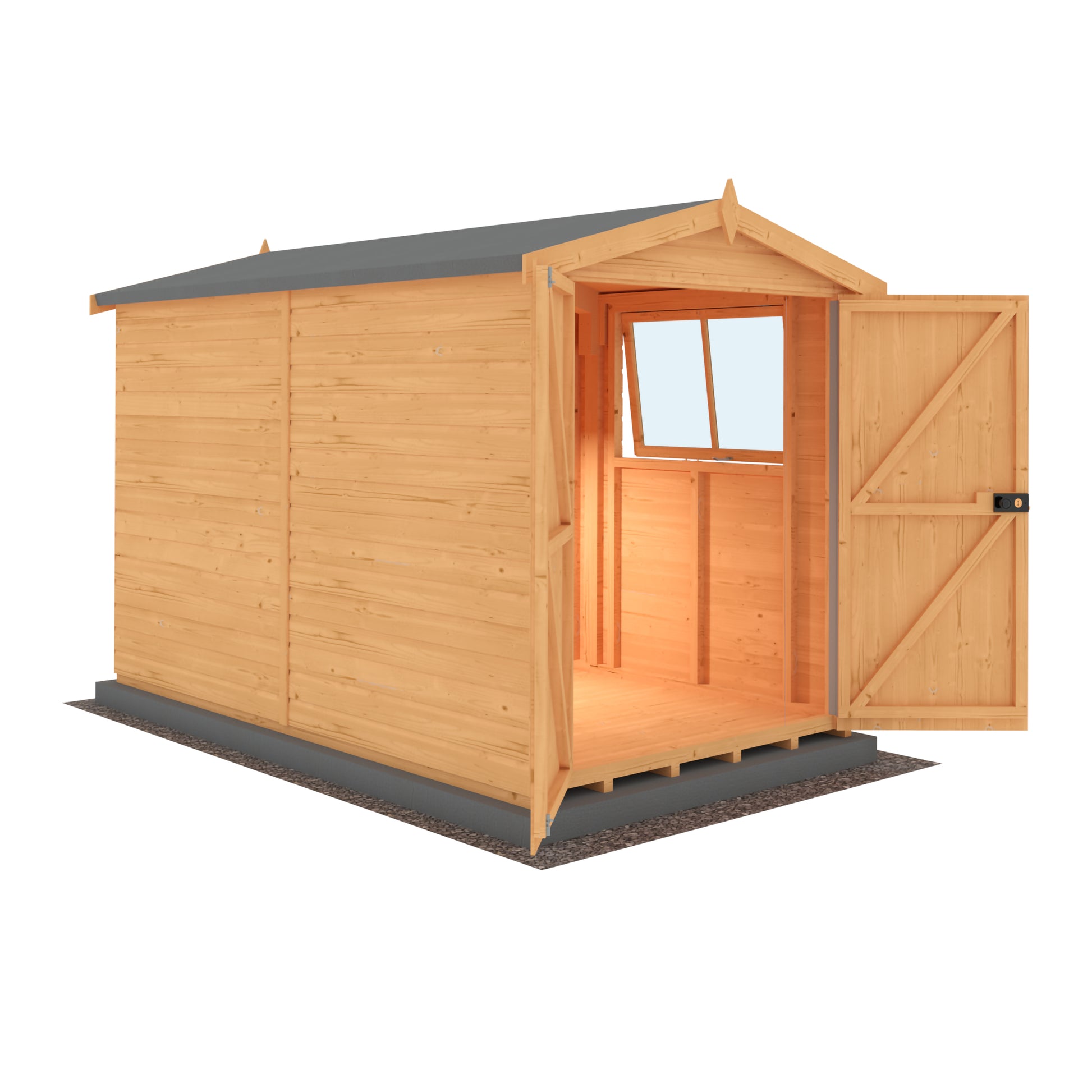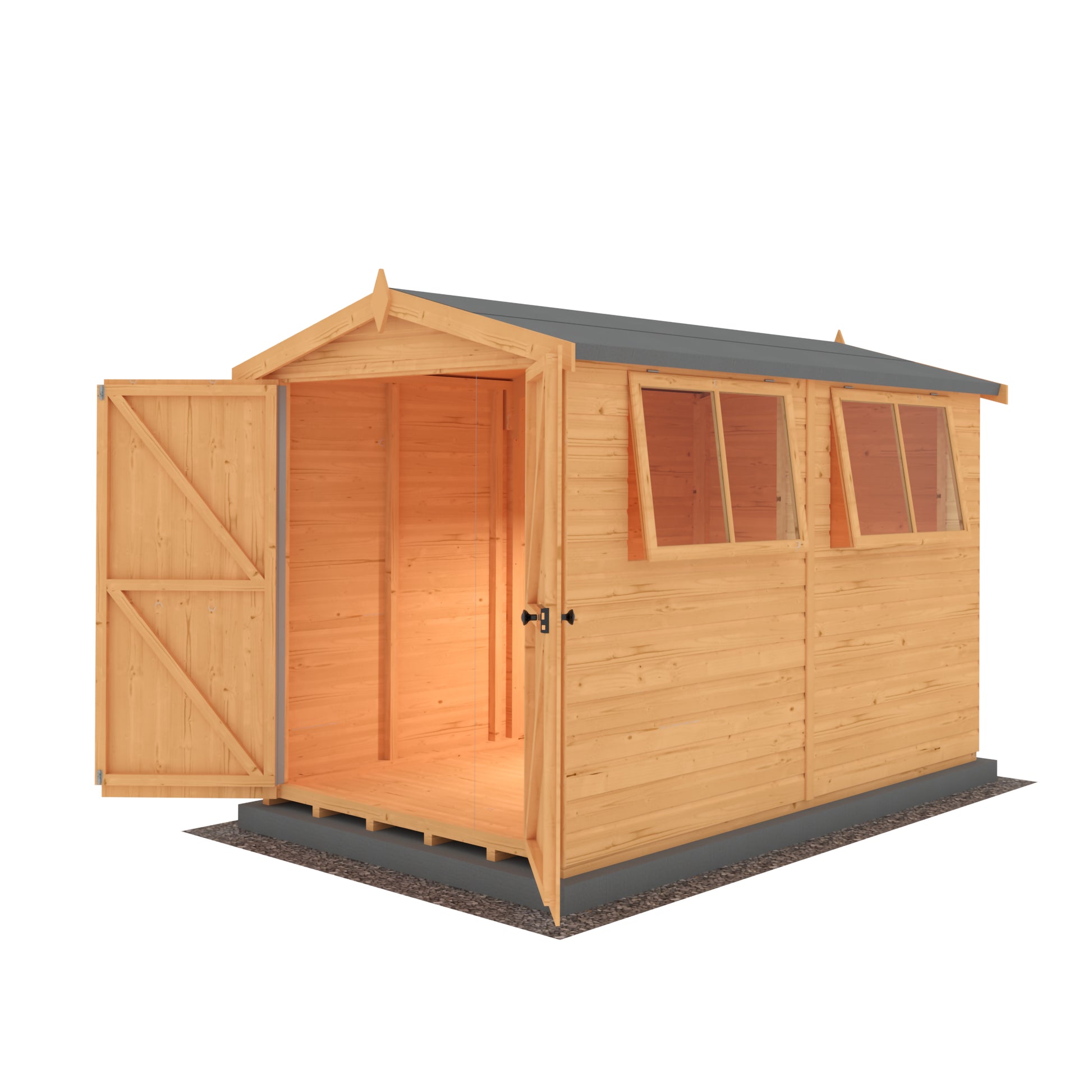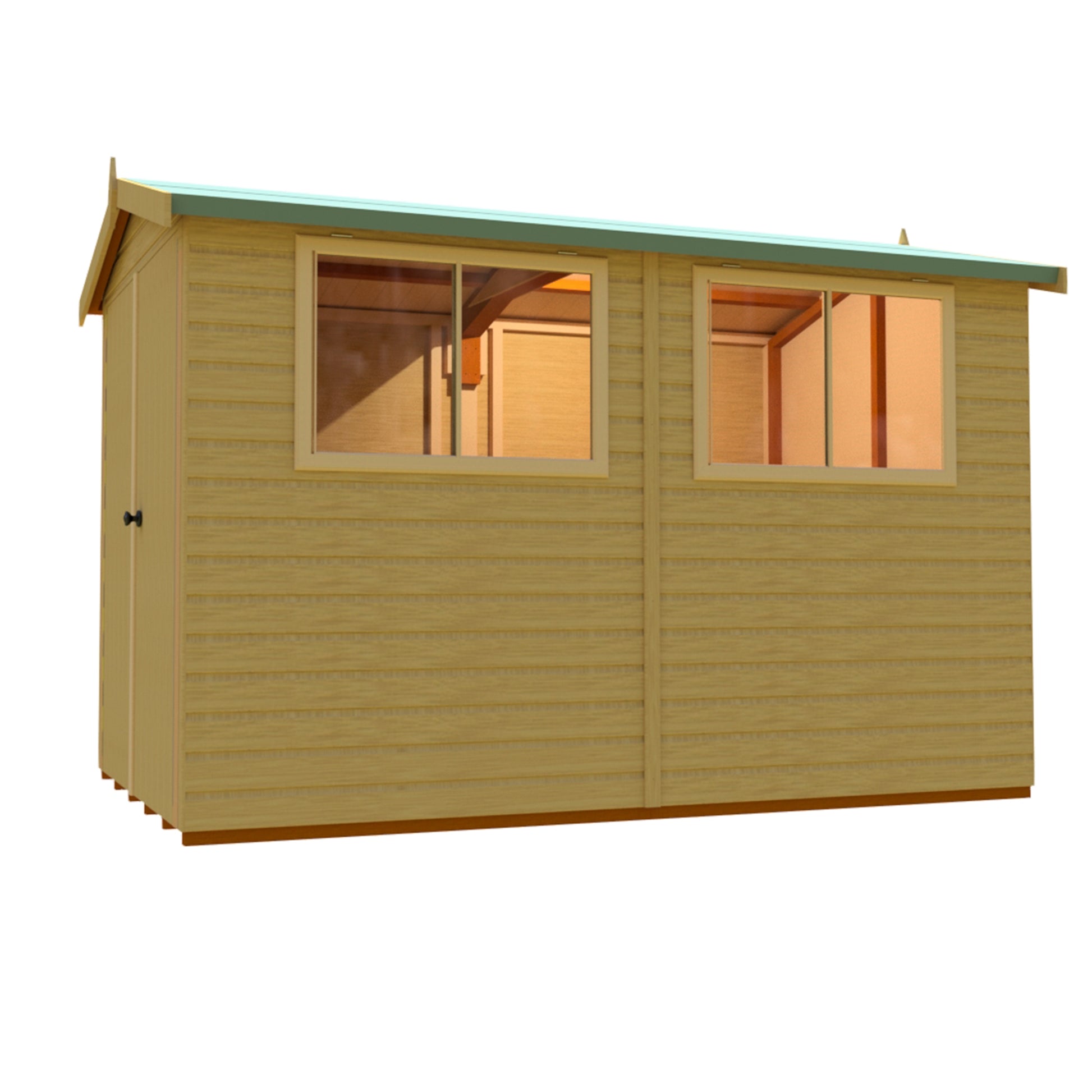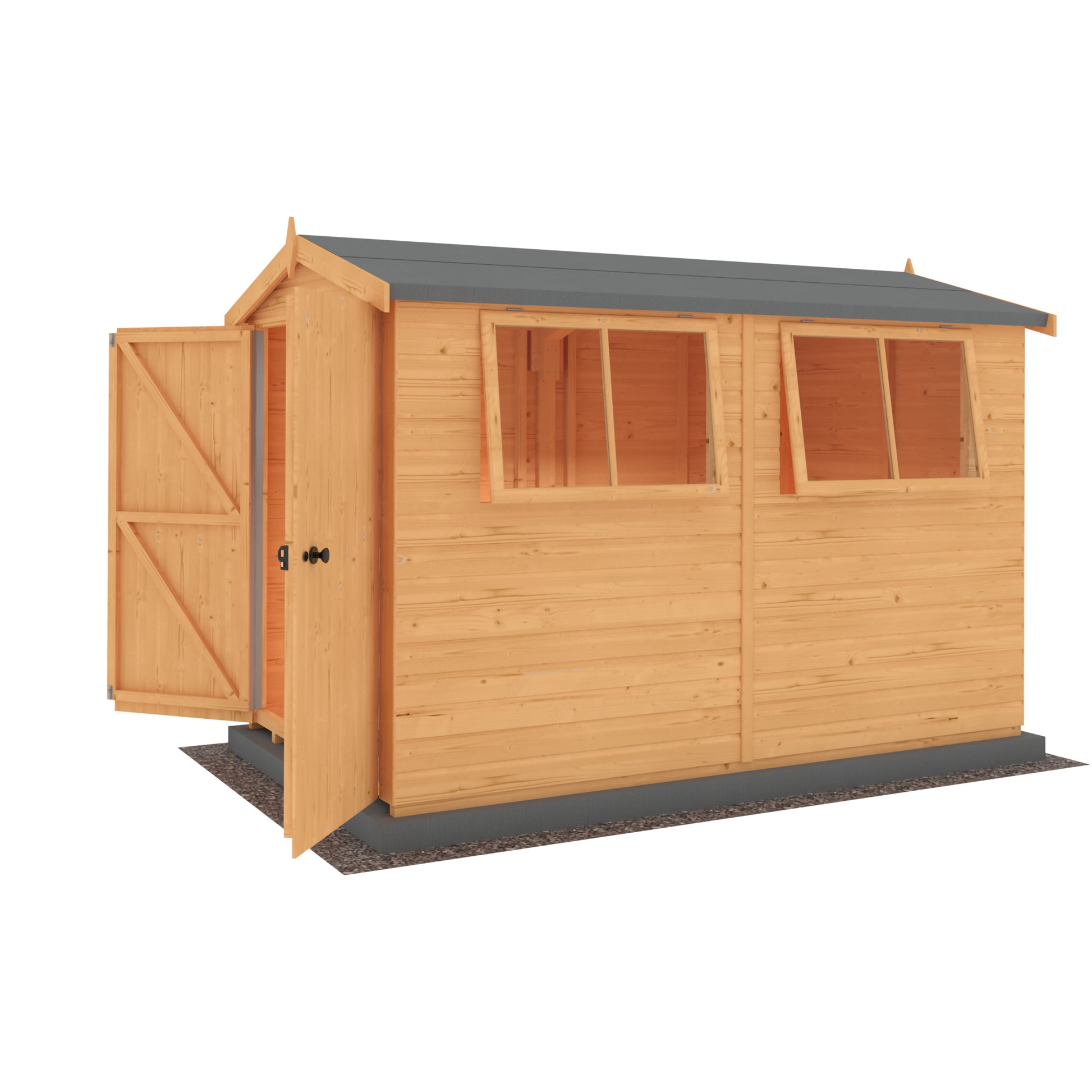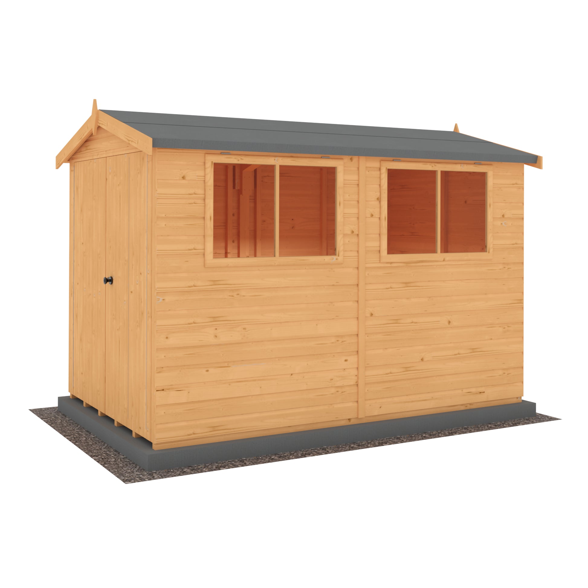 The Atlas 10 x 6 Double Door Shiplap Shed from ShireGB offers the perfect balance of functionality and security. Constructed with 12mm thick shiplap tongue and groove cladding, it provides a sturdy and weather-resistant structure. The 44mm x 44mm framing adds strength and longevity. The apex roof design allows for efficient water runoff, and the double doors with rim locks and full-length hidden hinges ensure security. High-level fixed windows let in natural light while maintaining privacy.