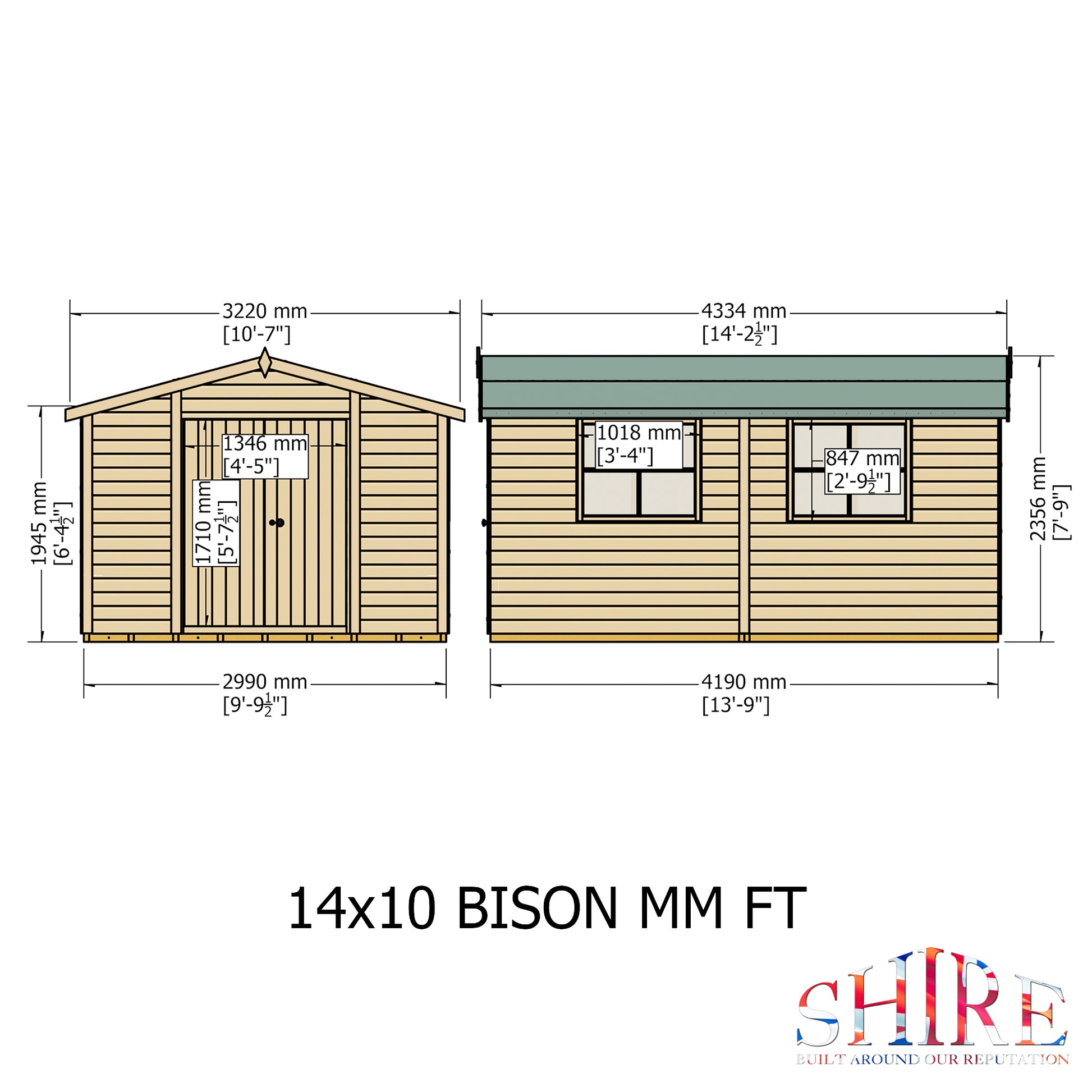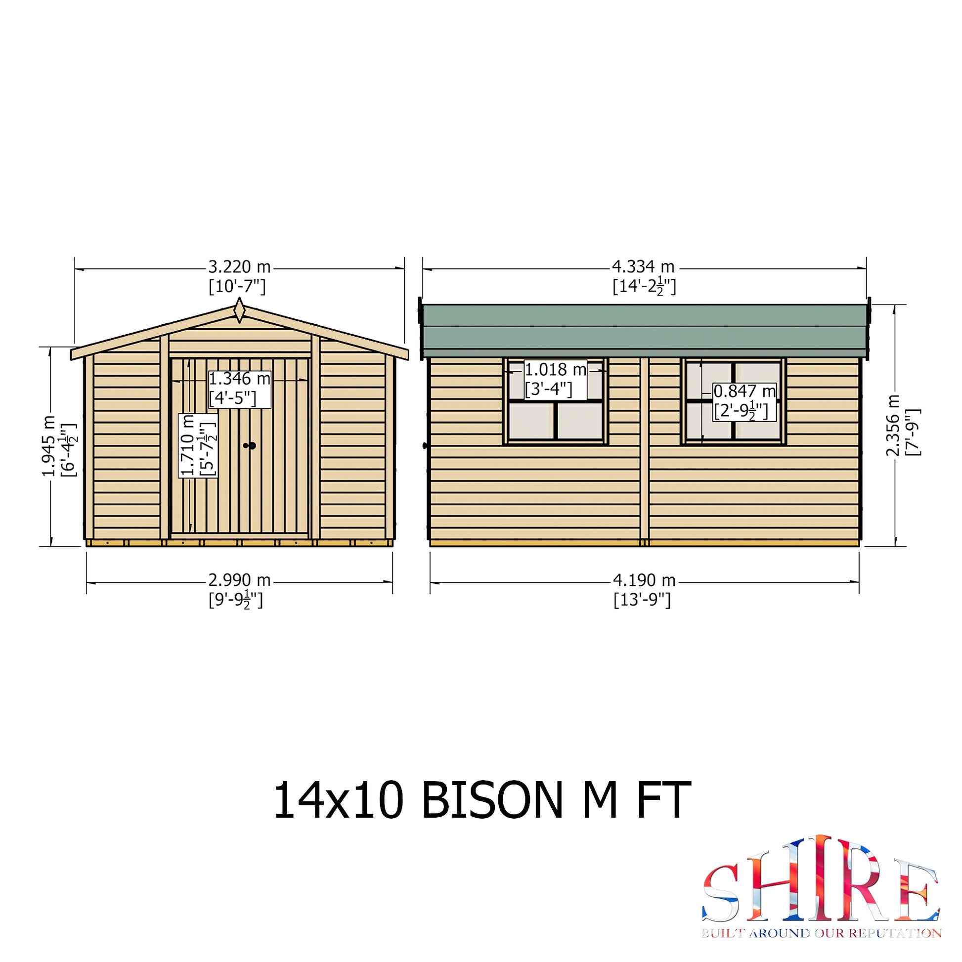 The Shire Bison Multi-Functional Shiplap Apex Workshop Shed (14 x 10) is designed for versatility, offering secure storage and a comfortable space for DIY projects. Made with FSC-certified wood and a felt roof, it provides durability and weather protection. The shed features two framed braced doors, storm-resistant windows, and a supported workbench for added comfort. With a minimum internal height of 6ft, it allows for easy movement, making it ideal for both storage and workshop use.