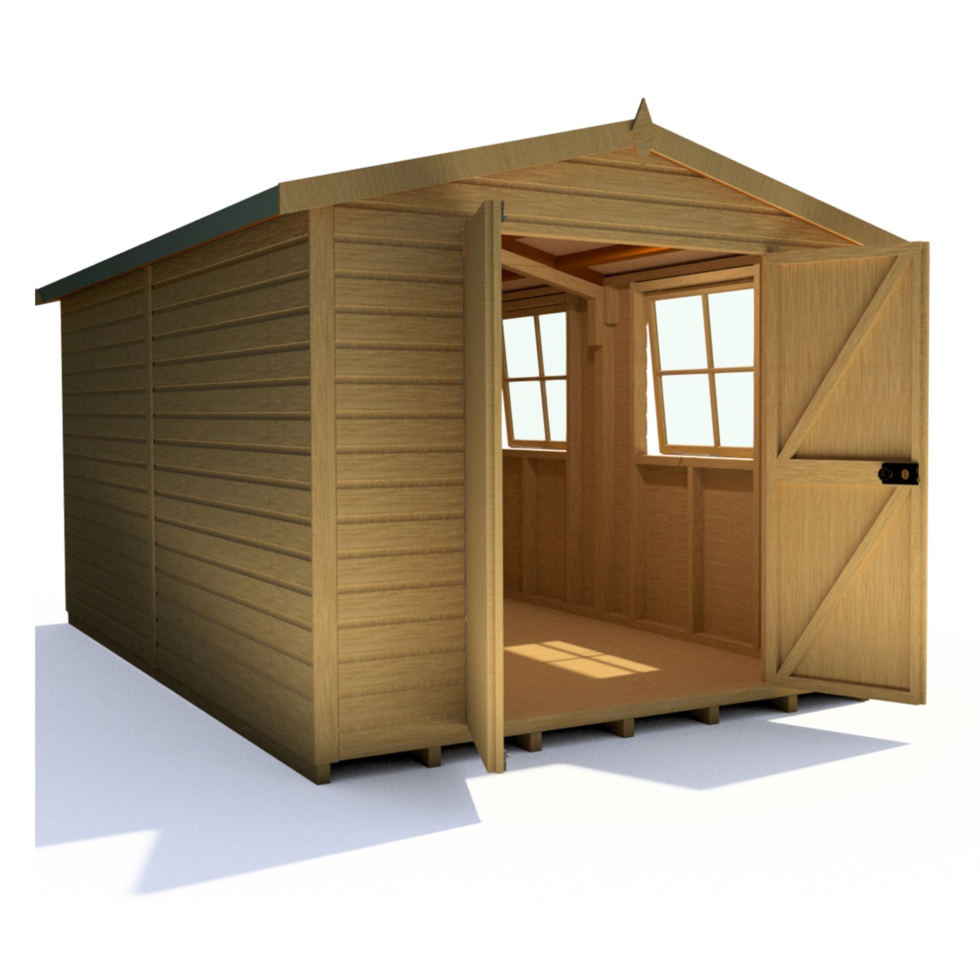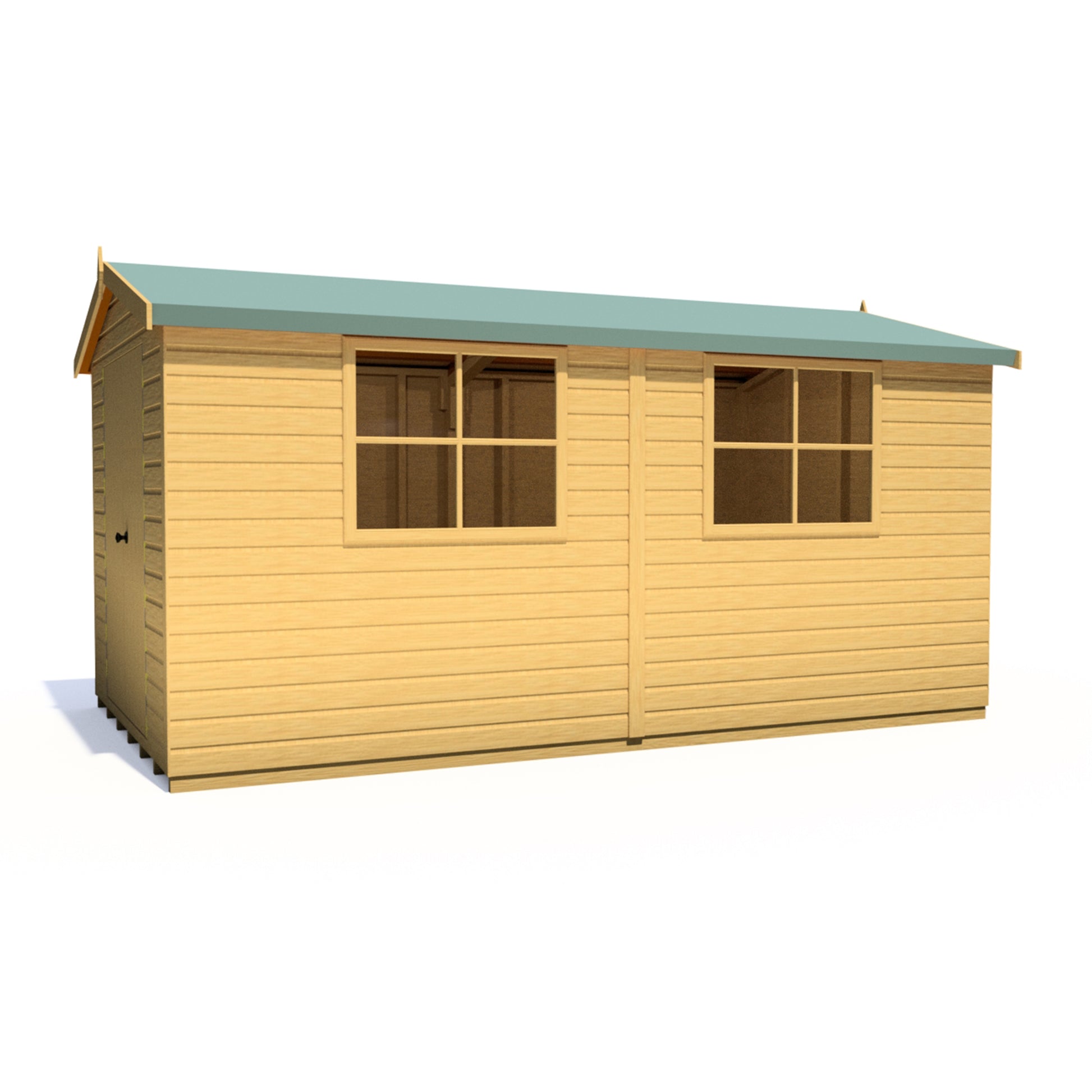 The Shire Bison Multi-Functional Shiplap Apex Workshop Shed provides a versatile and secure space for both storage and DIY projects. Built with FSC-certified wood and a felt roof, this shed is ideal for storing power tools, patio furniture, and gardening equipment. It features two fully framed braced doors, storm-resistant windows, and a supported workbench for comfort. With a 6ft internal height, it allows ample room to work and move freely, making it perfect for any domestic workshop or storage need.