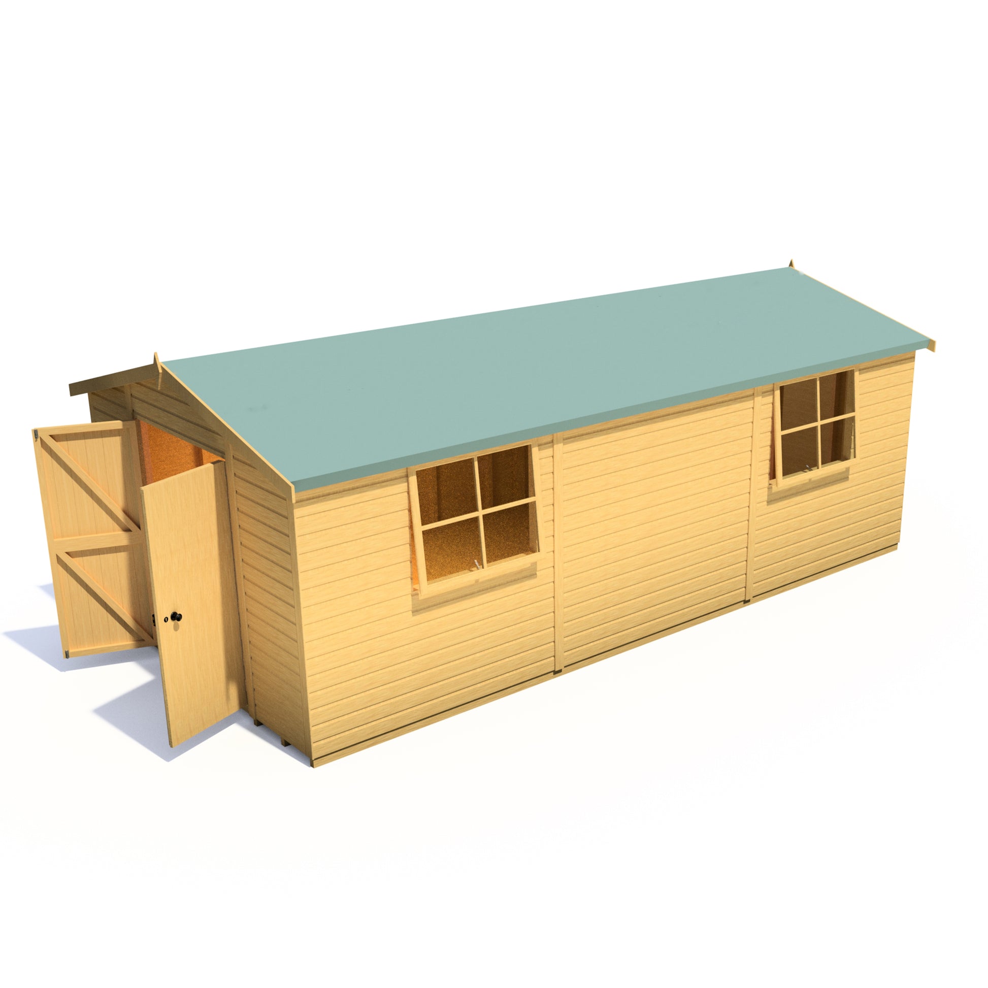 - Weather-Resistant Design: Shiplap cladding and felt roof protect against the elements.