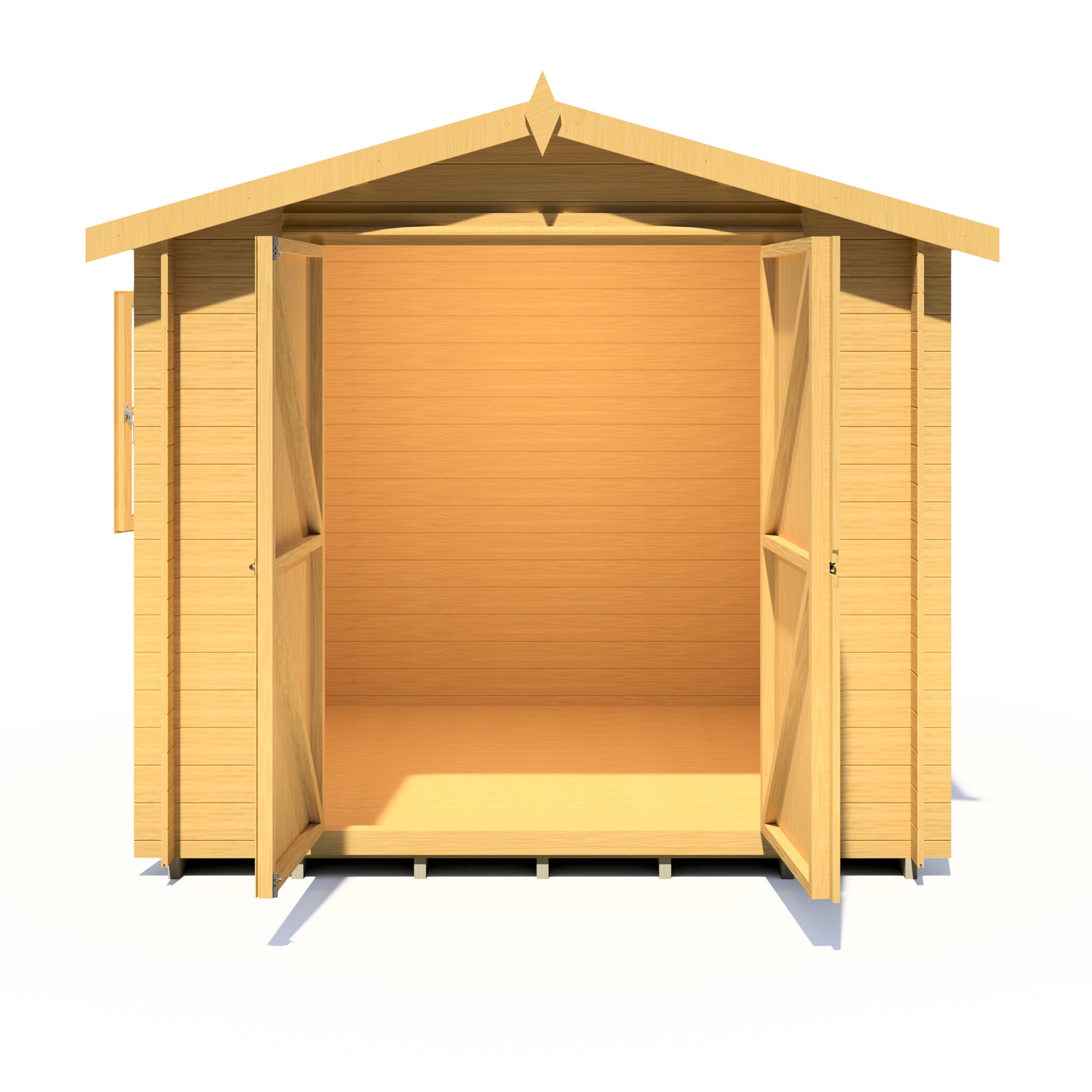 The Shire Bradley Log Cabin offers a compact, secure, and charming garden retreat, perfect for work, hobbies, or relaxation. Crafted from 19mm tongue-and-groove timber with a 12mm T&G roof and floor on pressure-treated bearers, it features lockable double doors with concealed full-length piano hinges and an opening window. Designed for durability and style, this log cabin transforms unused garden space into a versatile year-round haven.
