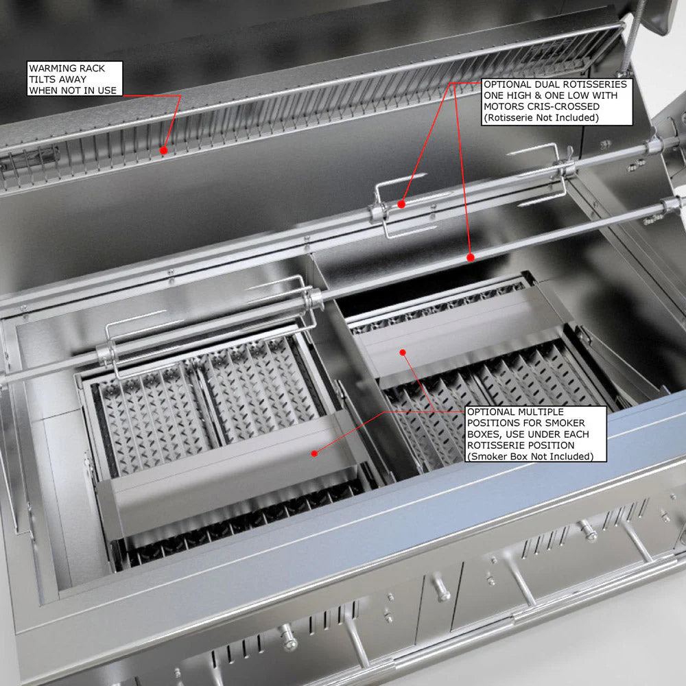 Elevate your outdoor cooking experience with the Sunstone 42″ Charcoal & Wood Hybrid Dual Zone Grill. Crafted from 100% 304-grade stainless steel, this premium built-in grill delivers unmatched durability, heat resistance, and a sleek, modern appearance. The hybrid design combines the authentic flavours of charcoal and wood with the convenience of gas ignition, providing effortless starts and ultimate control over your grilling.