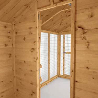 - Spacious 10 x 6 design with separate sheltered kennel and open run