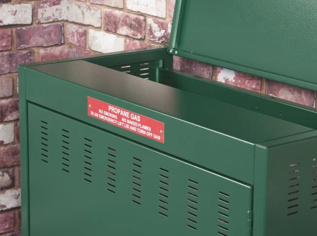 Accessing your gas cylinders is a breeze with the large front door and lift-up lid, allowing for quick inspections without unlocking the unit. For added security, our gas bottle locking bar at the rear of the unit ensures your bottles are safely secured.