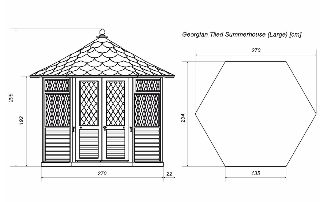 The Jagram Georgian Summerhouse 2.7m is a timeless hexagonal wooden summerhouse which comes with wooden floors and double doors creating the perfect space to enjoy the outdoors.