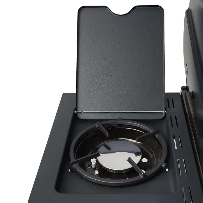 The innovative GRLLR flow system channels away excess fat for safer grilling and healthier meals, minimising flare-ups while maximising flavour. For added versatility, the cast iron side burner rack provides an extra cooking zone for sauces, sides, or searing.