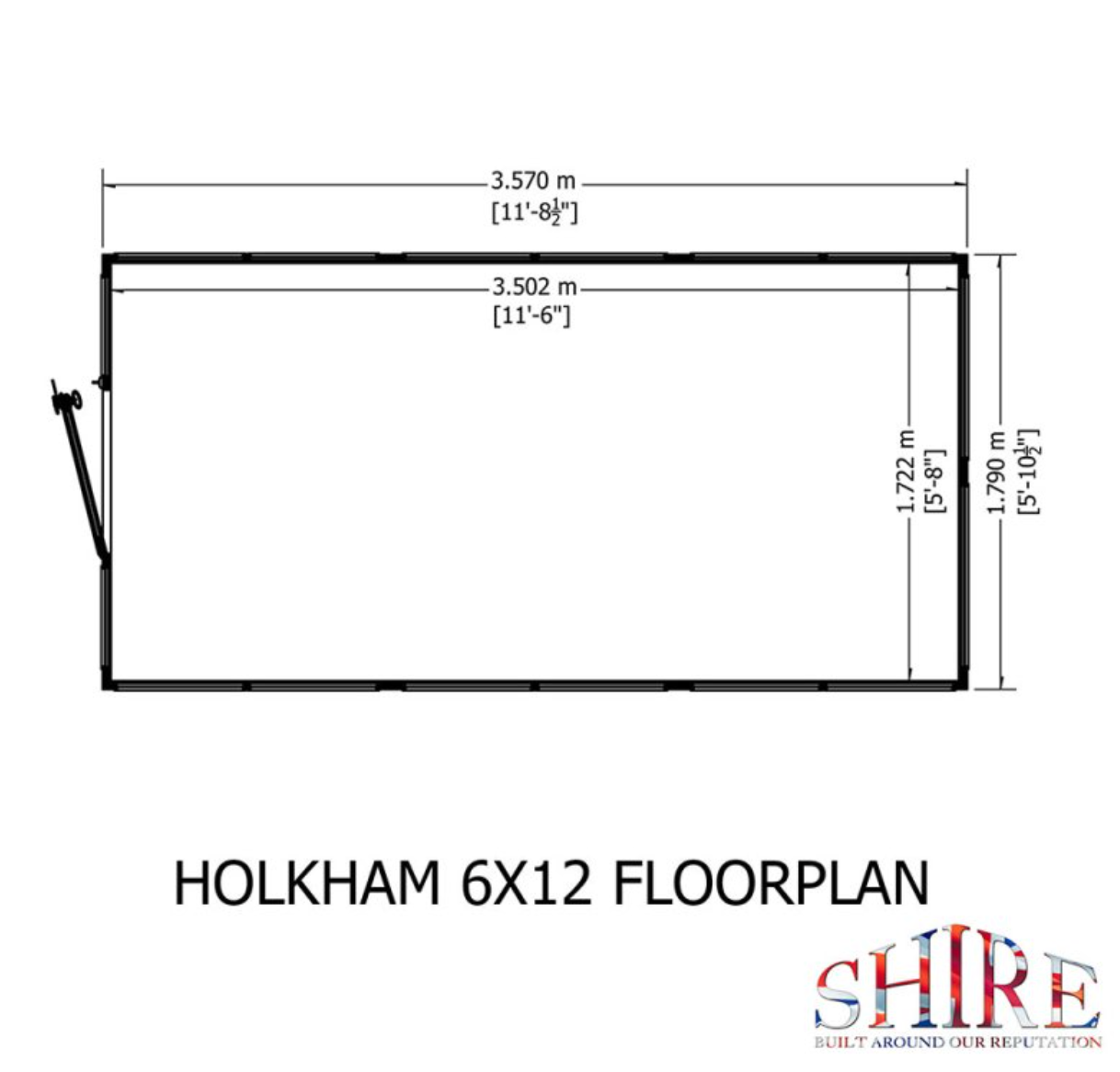 The Shire Holkham 12x6 is a robust and spacious garden shed, providing 72 sq ft of storage for your outdoor tools and equipment. Constructed from high-quality timber with a durable roof, it offers reliable protection against the elements. Perfect for organizing your garden or backyard, this shed combines practicality with style, making it an essential addition to any outdoor space for homeowners seeking both durability and functionality.