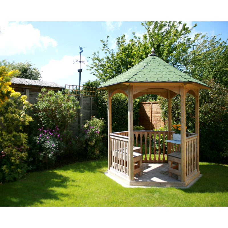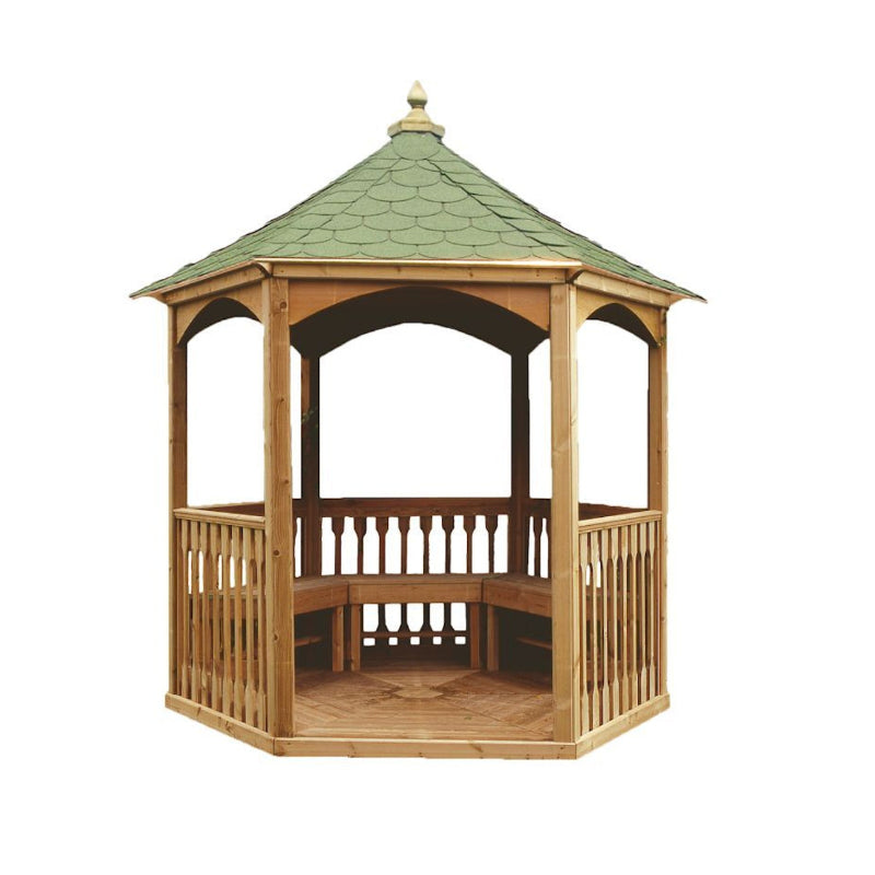 All Jagram buildings are crafted from Spruce softwood with all timber used treated with the highest quality wood preservative. The spruce softwood is sourced ethically and responsibly. There is a 10-year guarantee which protects against attacks from insects, decaying or weathering (providing the gazebo is put up and looked after properly)
