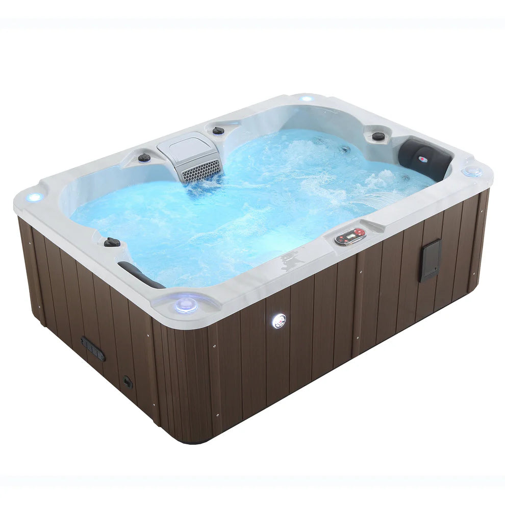 The Kelowna's 50ft² of filtration and built-in ozone generator ensure crystal clear water with minimal effort. Plus, unwind in style with the multi-coloured LED lighting.