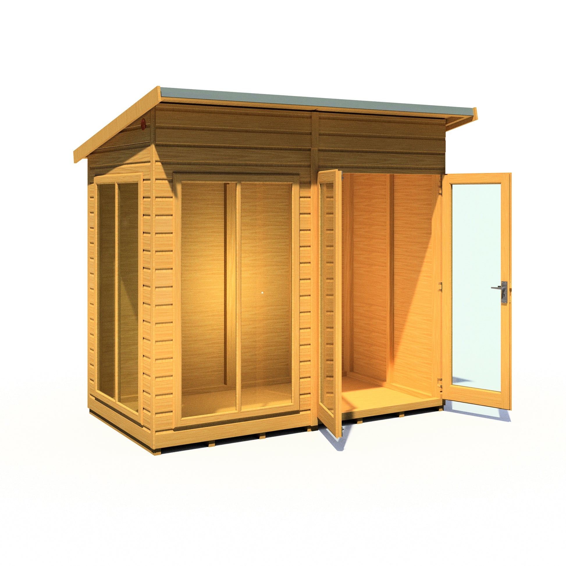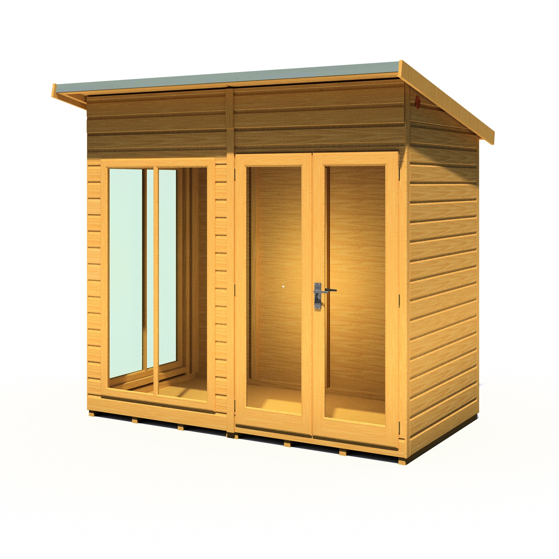 - Pent roof design – modern style with increased internal height