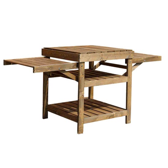 The Mercia Trent BBQ Table with Folding Sides is the perfect companion for outdoor cooking and pizza making. Designed with strength and practicality in mind, it features a sturdy main table ideal for pizza ovens, foldable sides for preparation and serving, and lower shelves for utensils and refreshments. Made in the UK from pressure-treated timber, this durable table is built to last and comes with a 15-year anti-rot guarantee—making it a stylish and reliable addition to any garden.