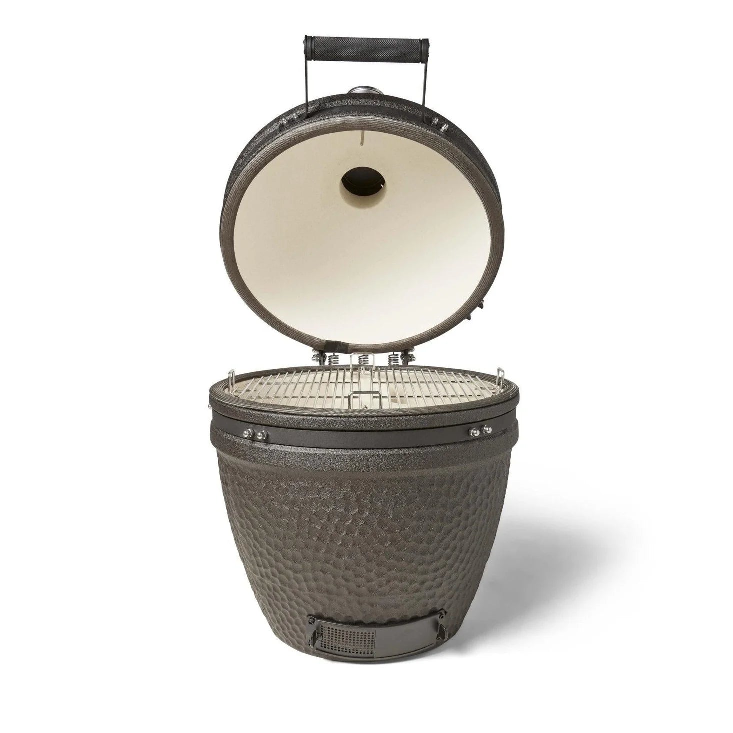 The striking matte midnight black finish makes this kamado a bold focal point in any garden or patio. A high-quality built-in thermometer provides precise temperature readings resistant to condensation, while the adjustable air vents offer effortless heat control — giving you mastery over slow smoking, roasting, or high-heat searing.