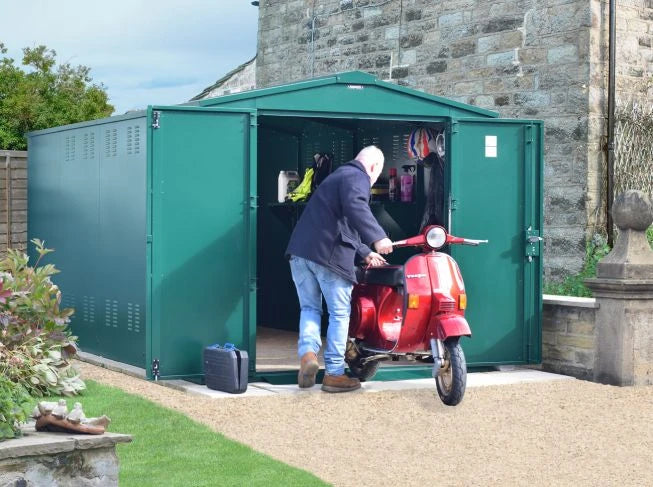 Furthermore, if you have concerns about condensation during colder days, fret not! This highly secure metal shed incorporates built-in ventilation in the middle panels and discreet roof vents. These features not only minimise condensation buildup but also ensure proper airflow inside the shed, preventing unpleasant odours. Rest assured that your motorbike will remain safe and dry, even throughout the winter months.