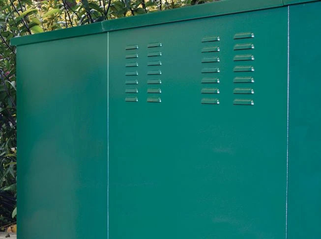Measuring at an impressive 2.24m wide and 3.33m long, this storage garage offers ample space to accommodate your motorcycles and riding gear. What sets it apart is the innovative built-in ventilation system integrated into the middle panels. This unique feature not only promotes airflow within the unit, preventing condensation, but also allows any fumes to escape, maintaining a fresh environment.