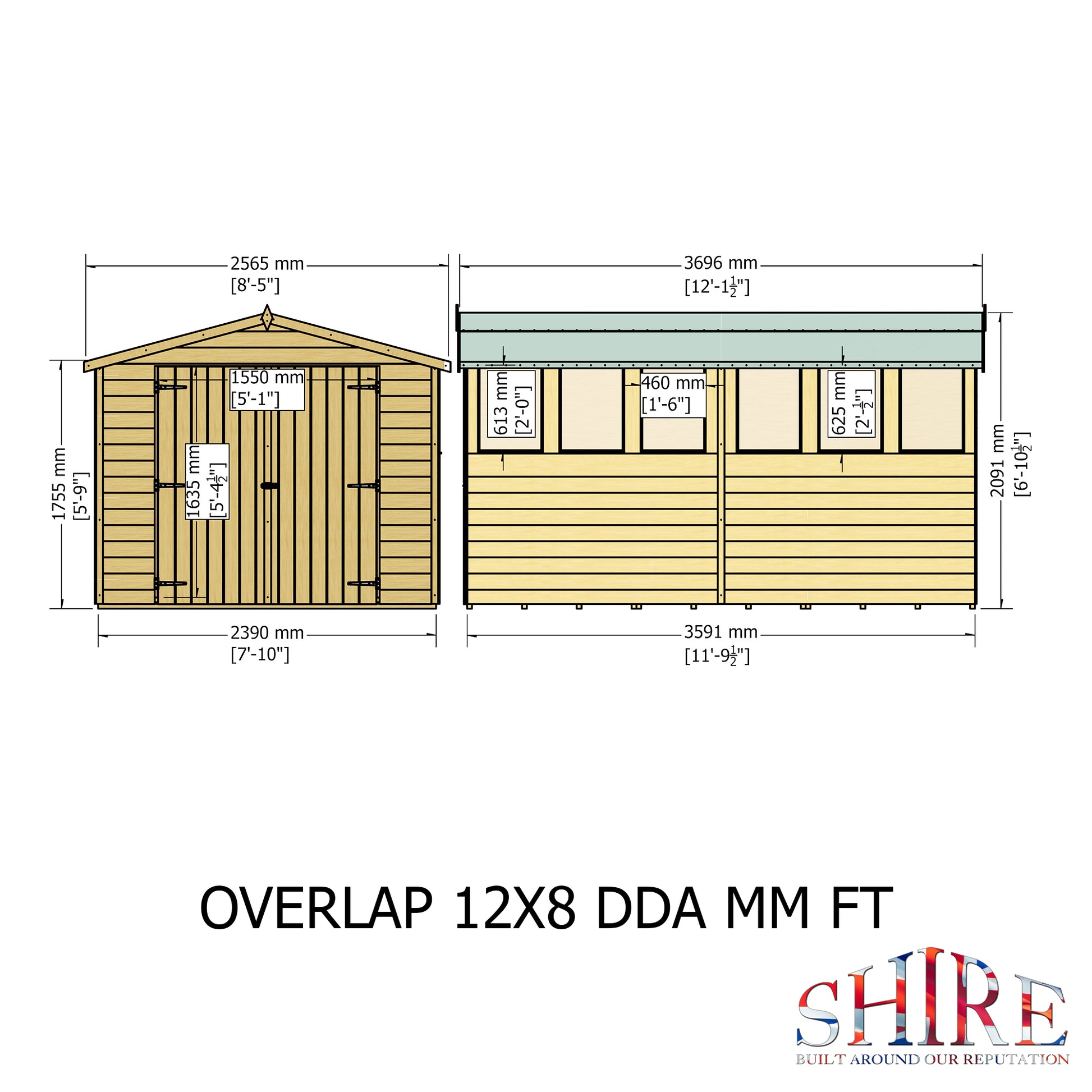 The Shire 12×8 Overlap Apex Shed with Double Doors is a durable and spacious garden storage solution. Made from rustic white pine from sustainable forests and pre-treated with a mould-resistant basecoat, it features six fixed styrene windows, a solid OSB roof and floor, and double doors for easy access. Delivered flat-packed with mineral roofing felt, it offers great value, straightforward DIY assembly, and a 10-year manufacturer’s guarantee.