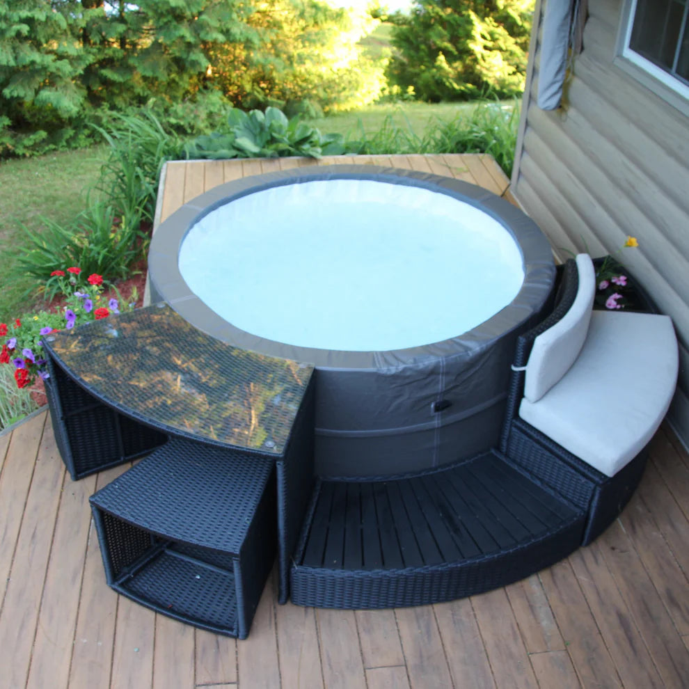 The exquisite wicker design, inspired by synthetic rattan, guarantees long-lasting strength and protection against harsh weather elements. This stunning decor piece is ideal for showcasing your beloved plants and bushes while you relax in your spa. Crafted specifically for circular spas measuring 152cm to 214cm (60" to 84") in diameter, this planter seamlessly complements other items in the collection, allowing you to create a serene and sophisticated spa ambiance.
