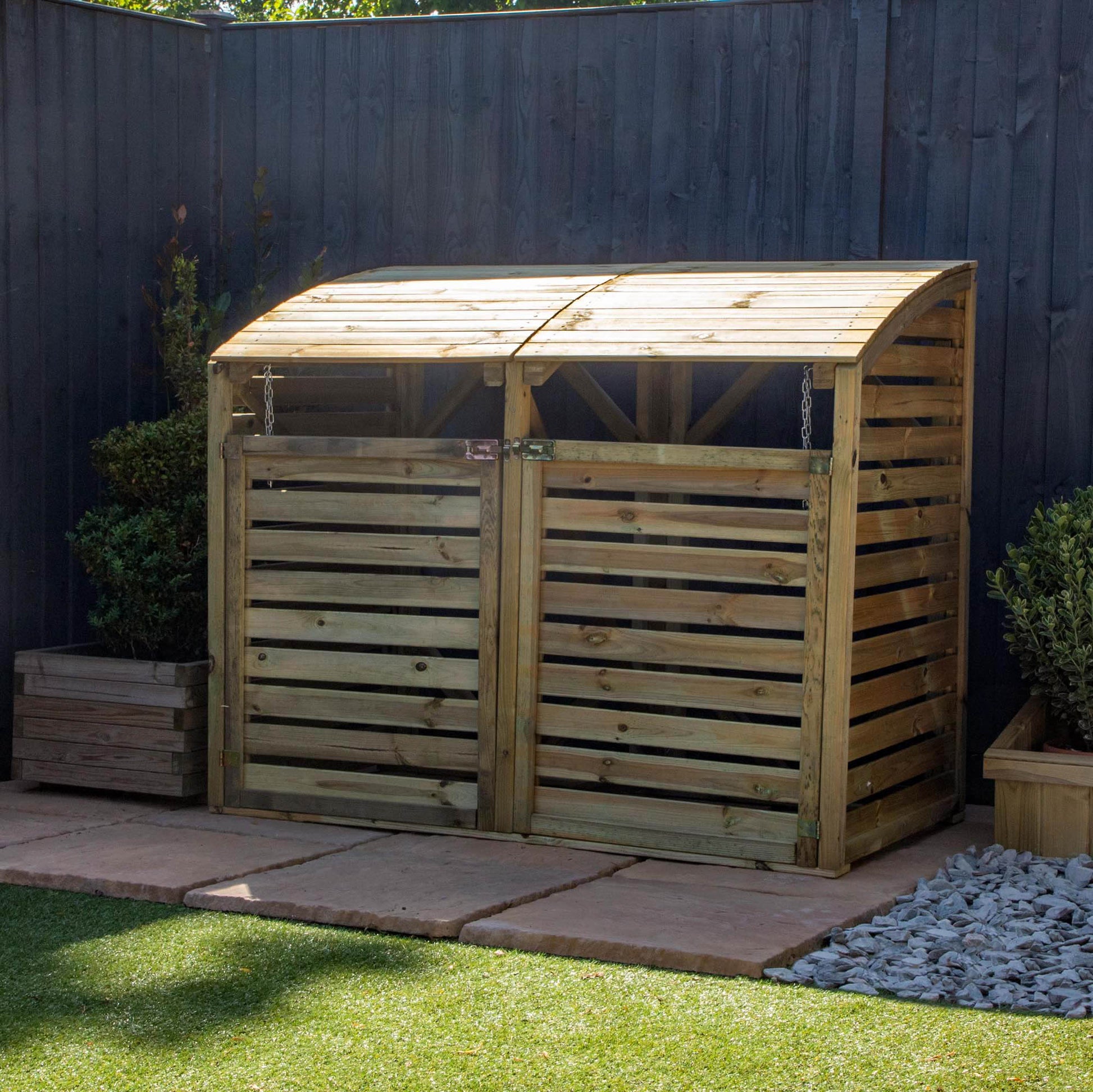 Keep your garden neat and organised with the Mercia Pressure Treated Double Bin Store. Designed to discreetly hide two standard wheelie bins, this store combines practicality with style. Built from pressure-treated timber for long-lasting durability and weather resistance, it features dual doors and hinged lids for quick, easy access. With a 15-year anti-rot guarantee and low-maintenance design, this double bin store is a reliable and attractive waste management solution for any outdoor space.