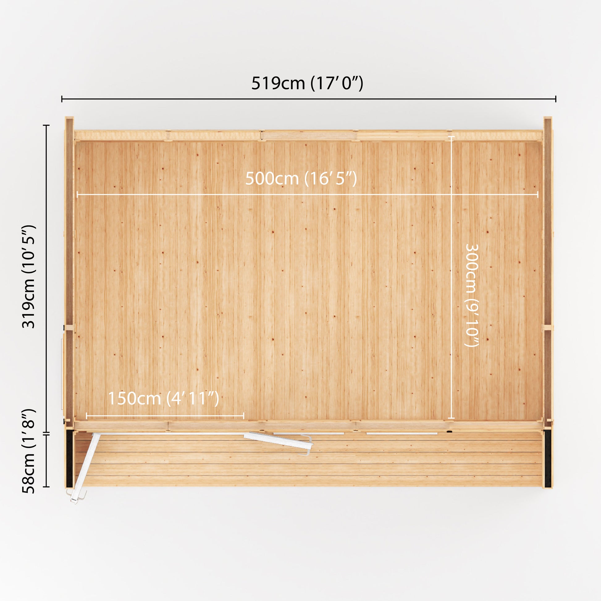 | Roof Material | OSB + 12mm Tongue & Groove + EPDM Rubber Membrane |