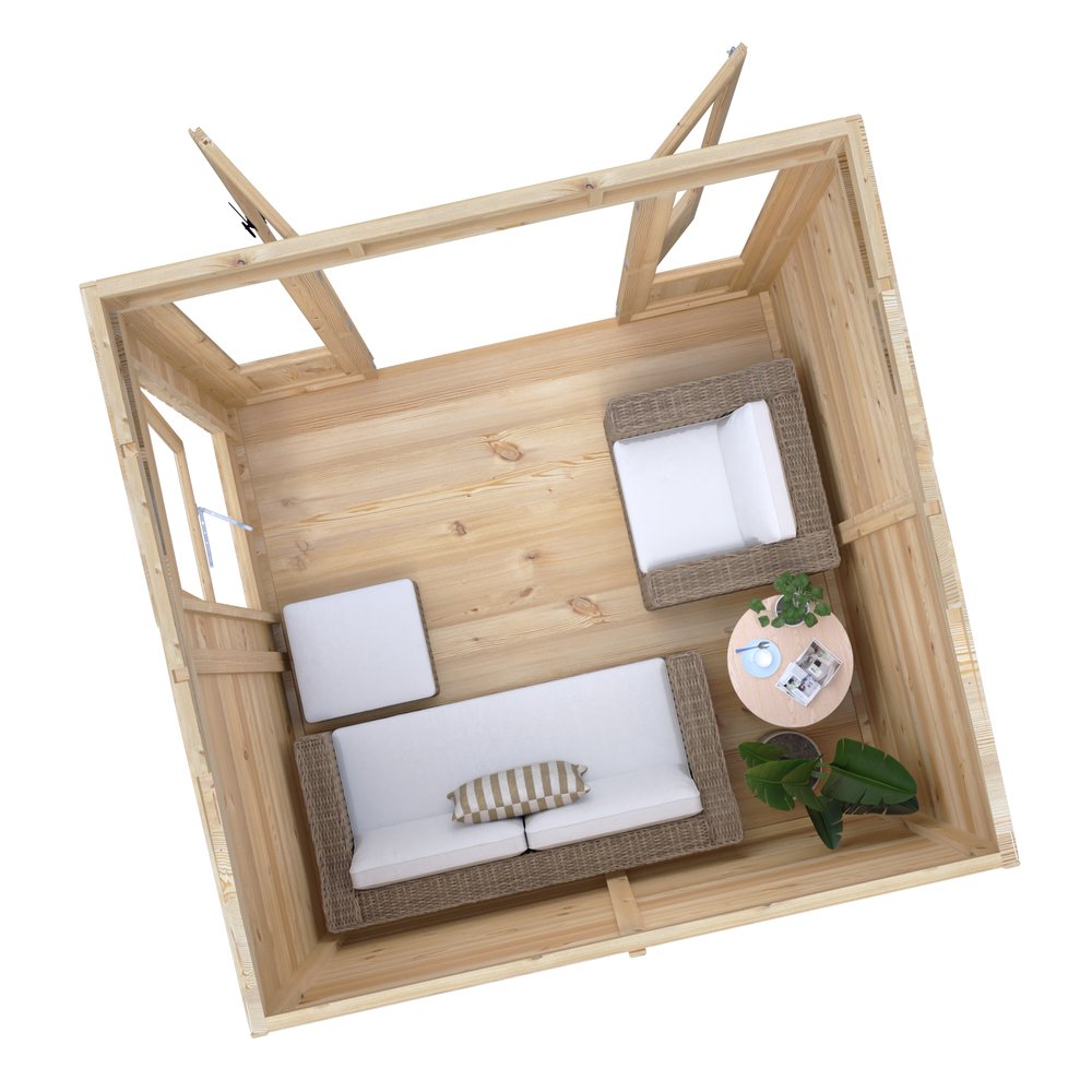 - Sturdy Flooring & Roof: 12mm tongue-and-groove floor and 8mm OSB roof with mineral felt.