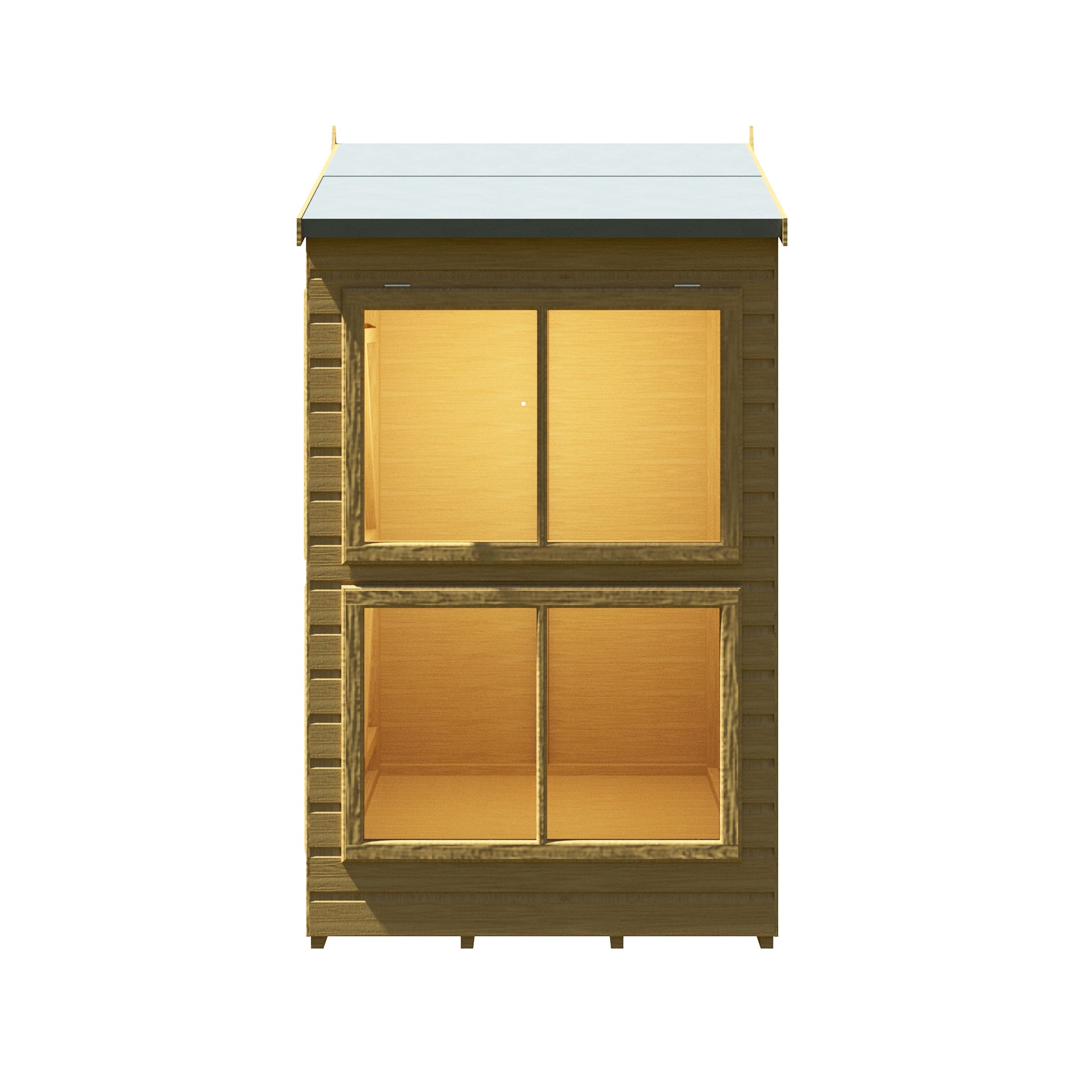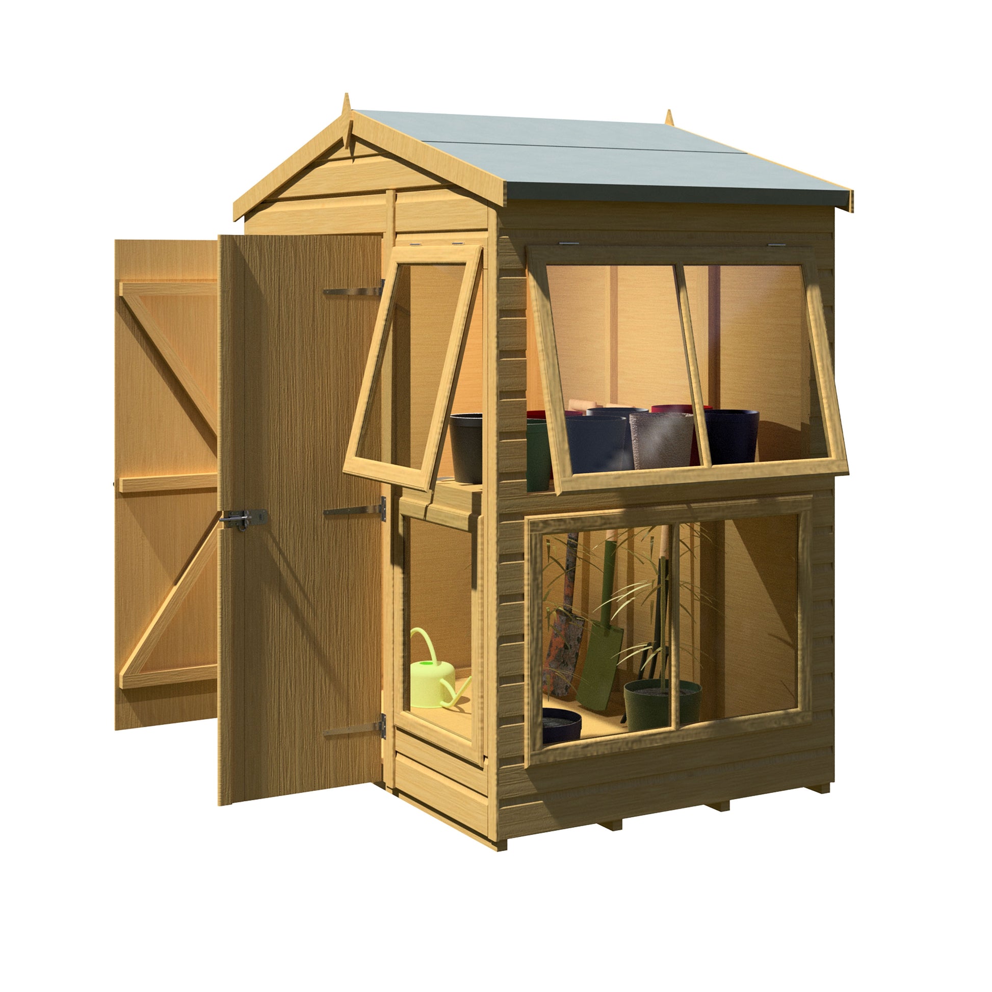 The 6 x 4 Shire Sun Hut Shiplap Potting Shed combines style, durability, and functionality for any garden. Crafted from 12mm shiplap timber with tongue-and-groove floor and roof, this shed provides excellent protection from the elements. Its versatile design allows the door to be positioned on either side, while four windows ensure natural light and ventilation. Perfect for storage, potting, or gardening, this shed is dip-treated for long-lasting anti-rot performance.